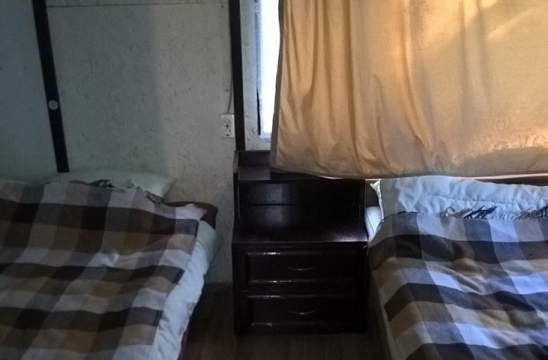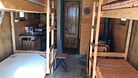 Домик с минимальным количеством удобств, состоящий из двух комнат: спальня и кухня.