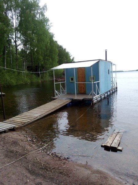 Баня на самом берегу Вуоксы, с комнатой отдыха и террасой. Спуск по лесенке к воде, зимой-прорубь.