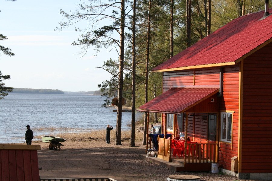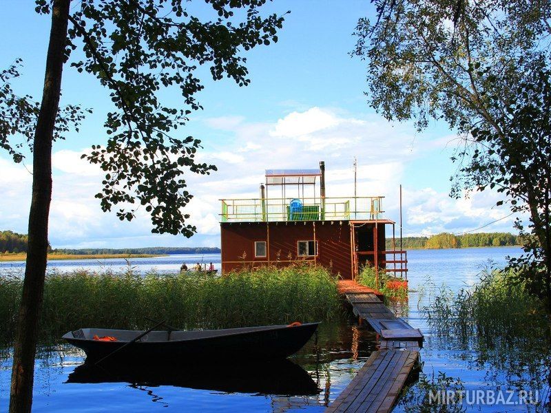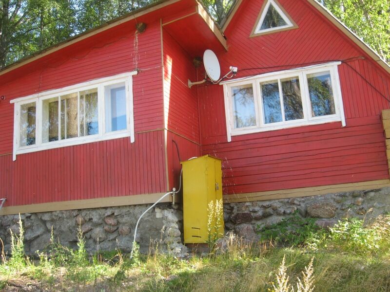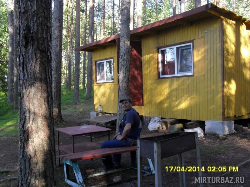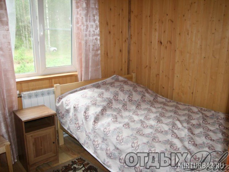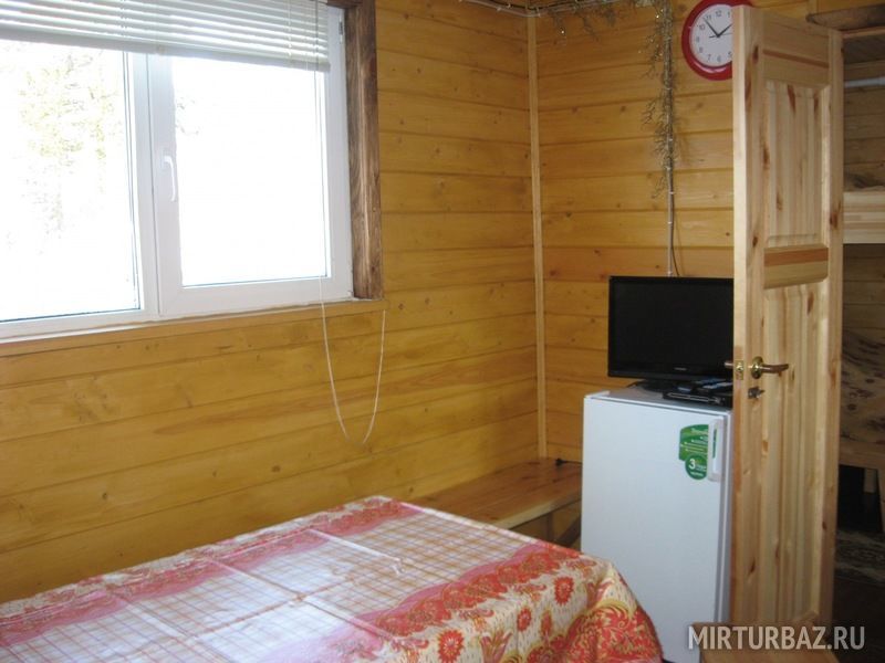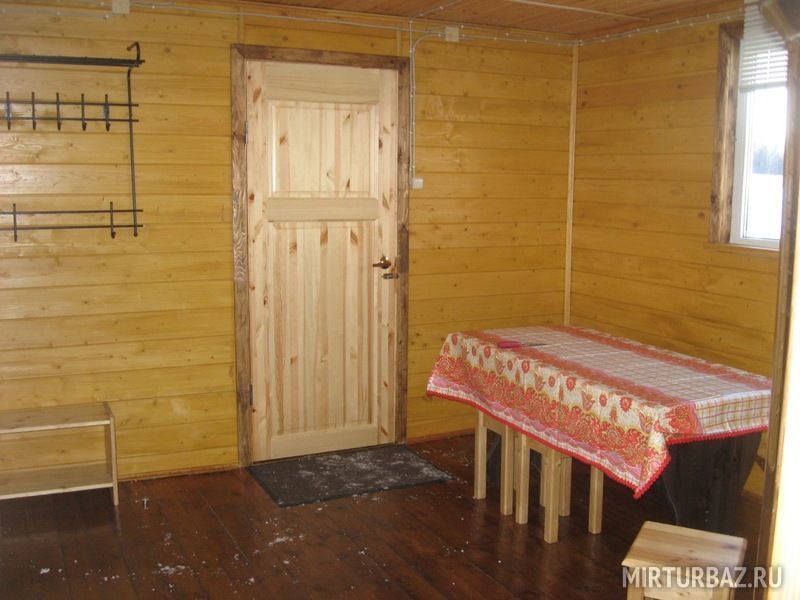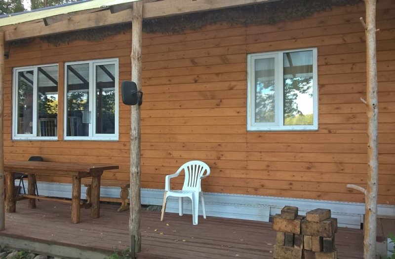 Отдельный домик на берегу, состоящий из двух комнат: спальня и кухня. В спальне 3 кровати: одна большая и две односпальные. На кухне дровяная печь, диван, кухонный уголок с газовой плиткой и всей необходимой посудой, мойка. На улице стол со скамейками под навесом, мангал. Туалет и душ-отдельная пристройка в центре базы.