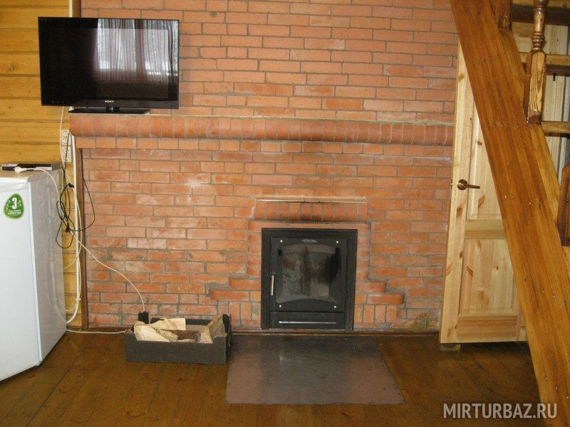 В доме есть камин, телевизор, холодильник, сауна, душ, кухня и 3 спальни. В каждой спальне по две кровати двухспальная и односпальная. В холле двухспальный диван.