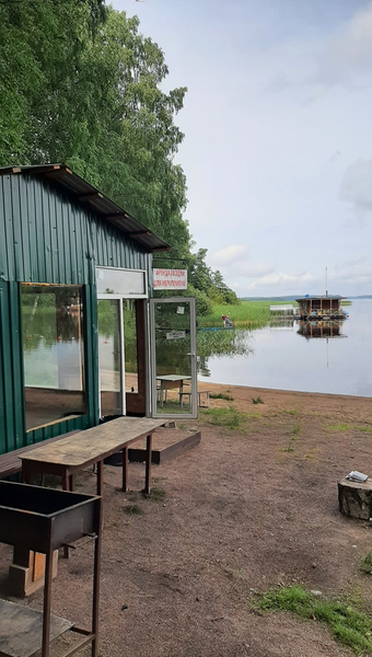 Аренда отапливаемой беседки для проведения мероприятий. Вместимость до 20 человек. Необходимая посуда и мангал в наличии. Беседка на самом берегу Вуоксы.