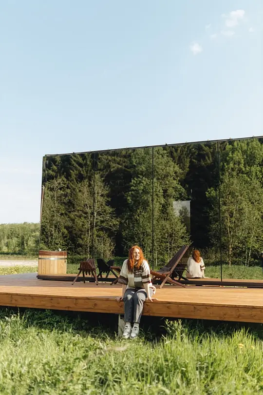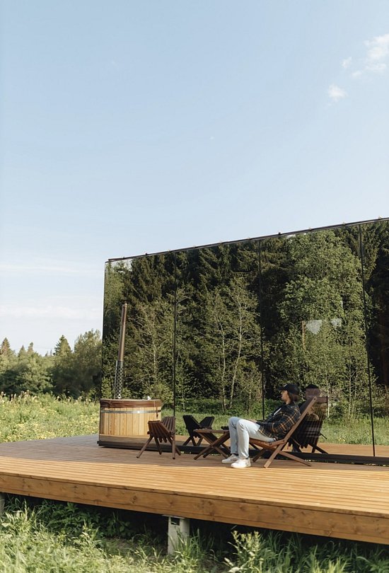 Уникальный зеркальный дом с горячей купелью для твоего лучшего отдыха в 40 мин от аэропорта.
