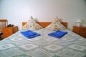 Уютный номер на троих. В номере: односпальная кровать, двуспальная кровать, прикроватные тумбочки, телевизор, холодильник, санузел с душем.