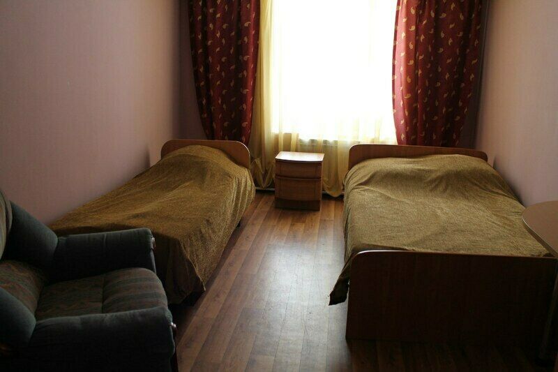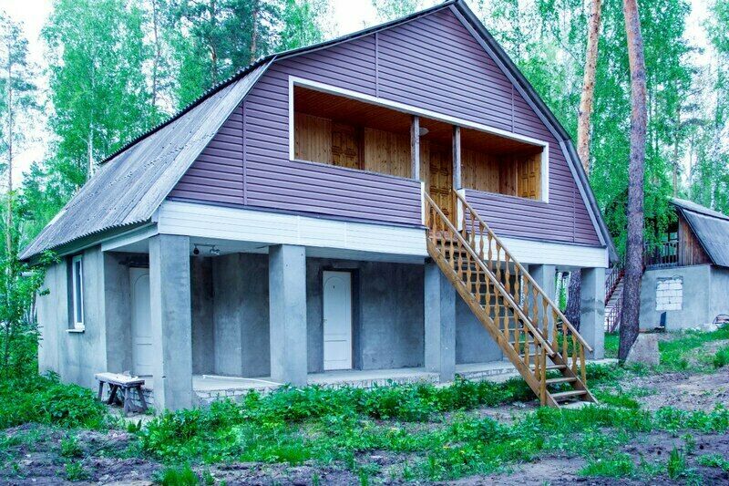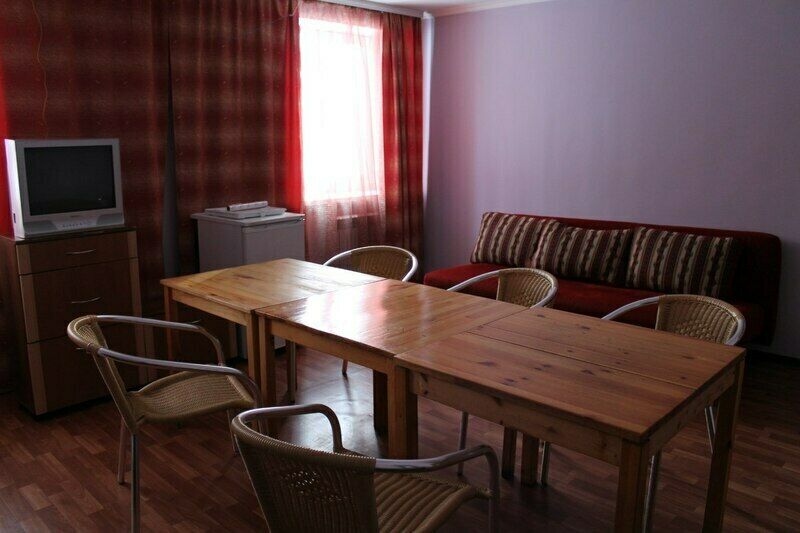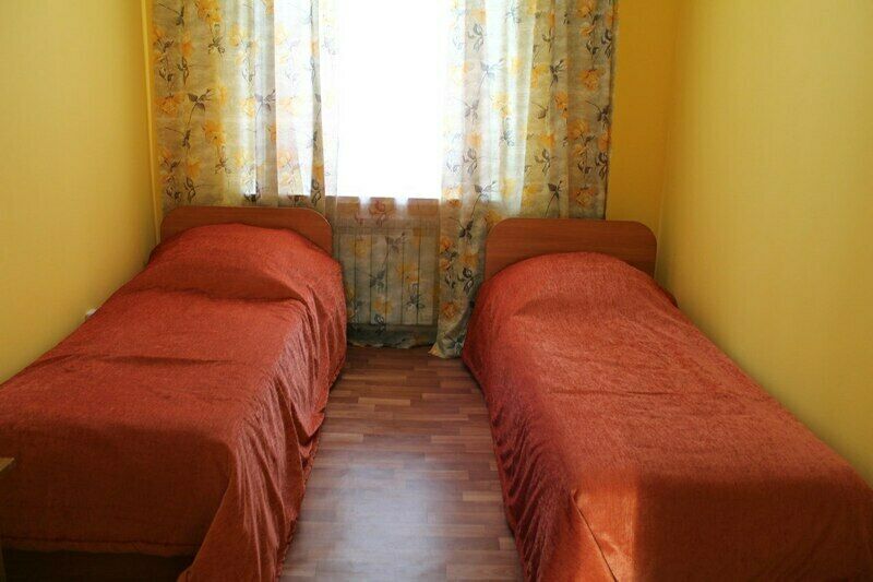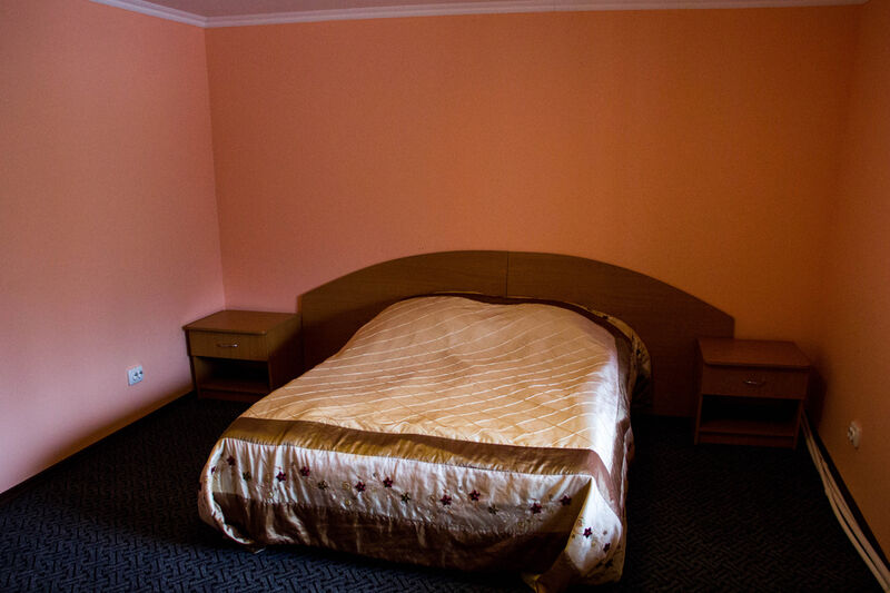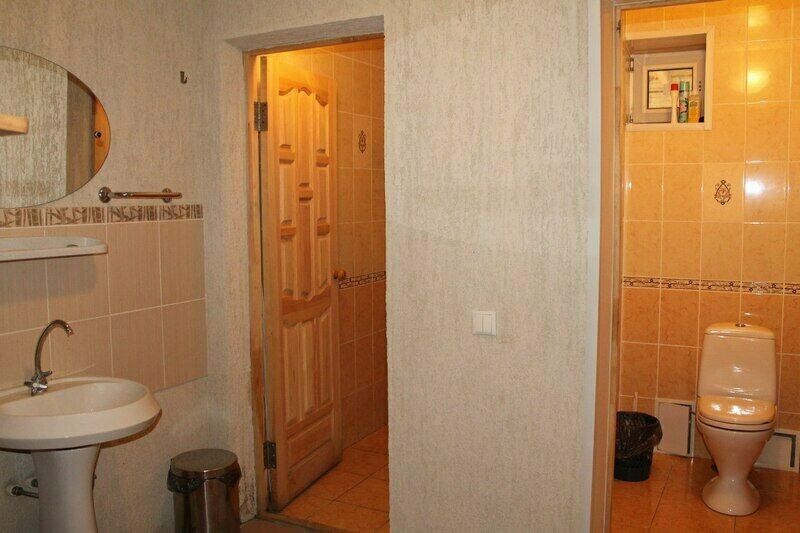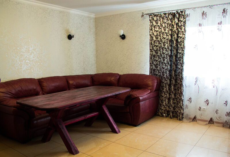 Двухэтажный коттедж имеет два входа на 1-й и 2-й этажи. 1-й этаж, номер двухместный и трёхместный, а также банкетный зал, небольшой хол, санузел и душевая. На 2-ом этаже 6 двухместных номеров, санузел
