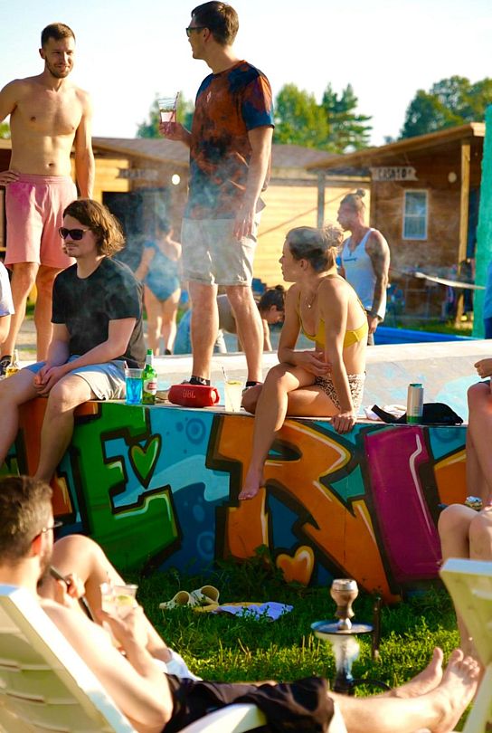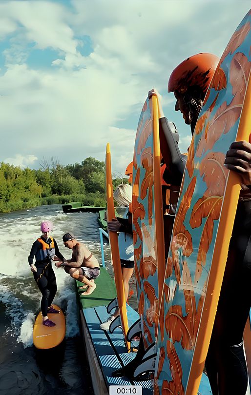 Лагерь — это недельное приключение среди цветущих полей на речной волне. Здесь приготовили летний коктейль из шумных вечеринок, путешествий по самым красивым и познавательным местам, сафари на серф диване, занятий сёрфингом , серф-скейтом, йогой, SUP Quest. Приправили все жаркой банькой, закатами в полях, дикой земляникой, играми и историями у костра Серф-лагерь находится на истоках Дона. Глубина реки около метра, поэтому Дон прогревается очень быстро. Катера и лодки не плавают, а Дон питается подземными ключами, именно поэтому вода всегда чистая и прозрачная.