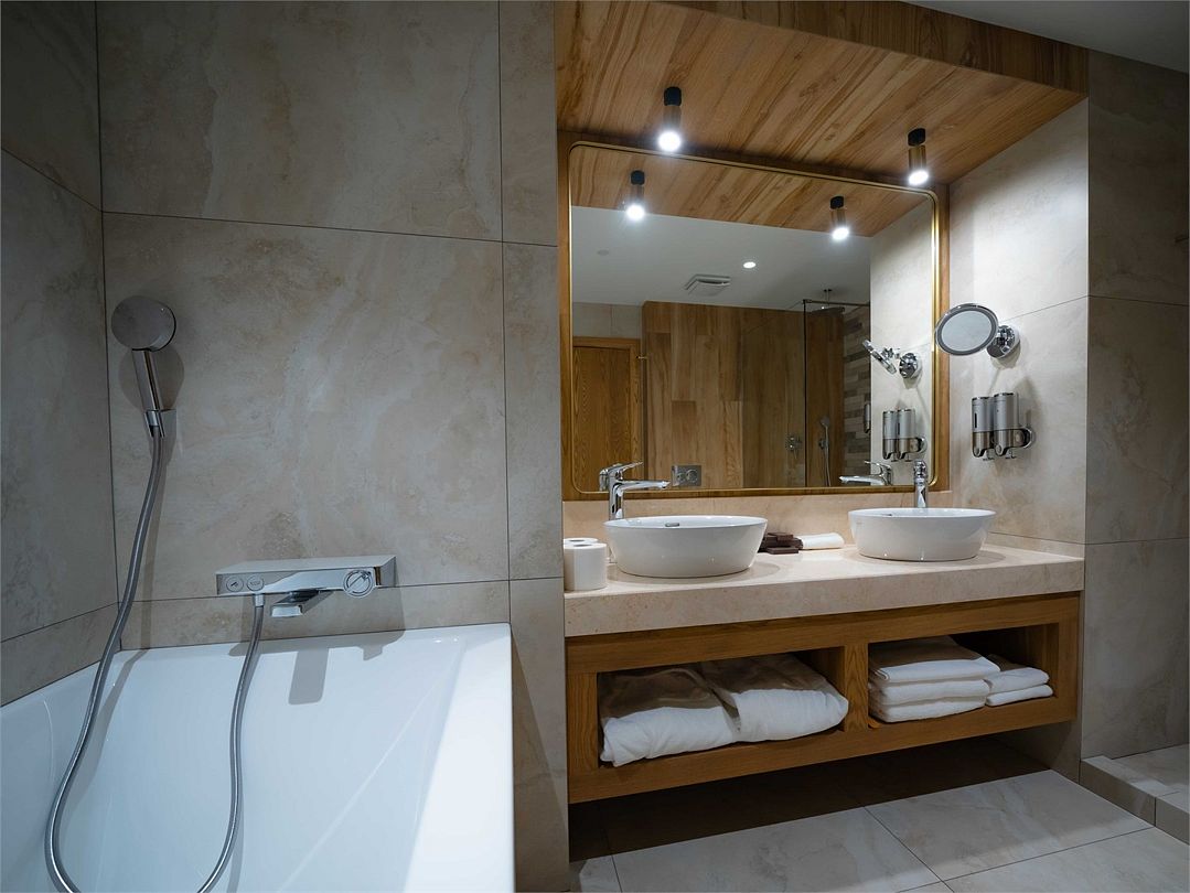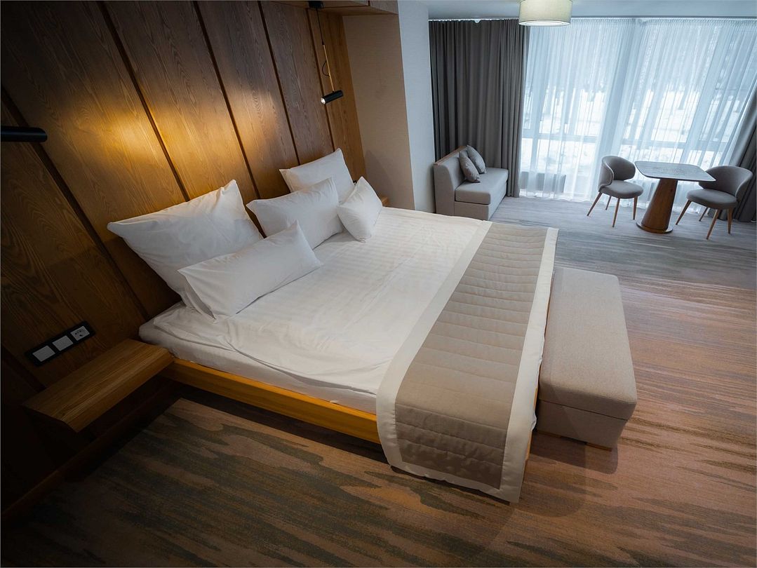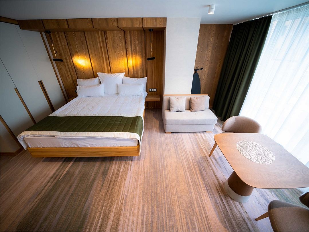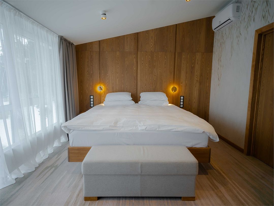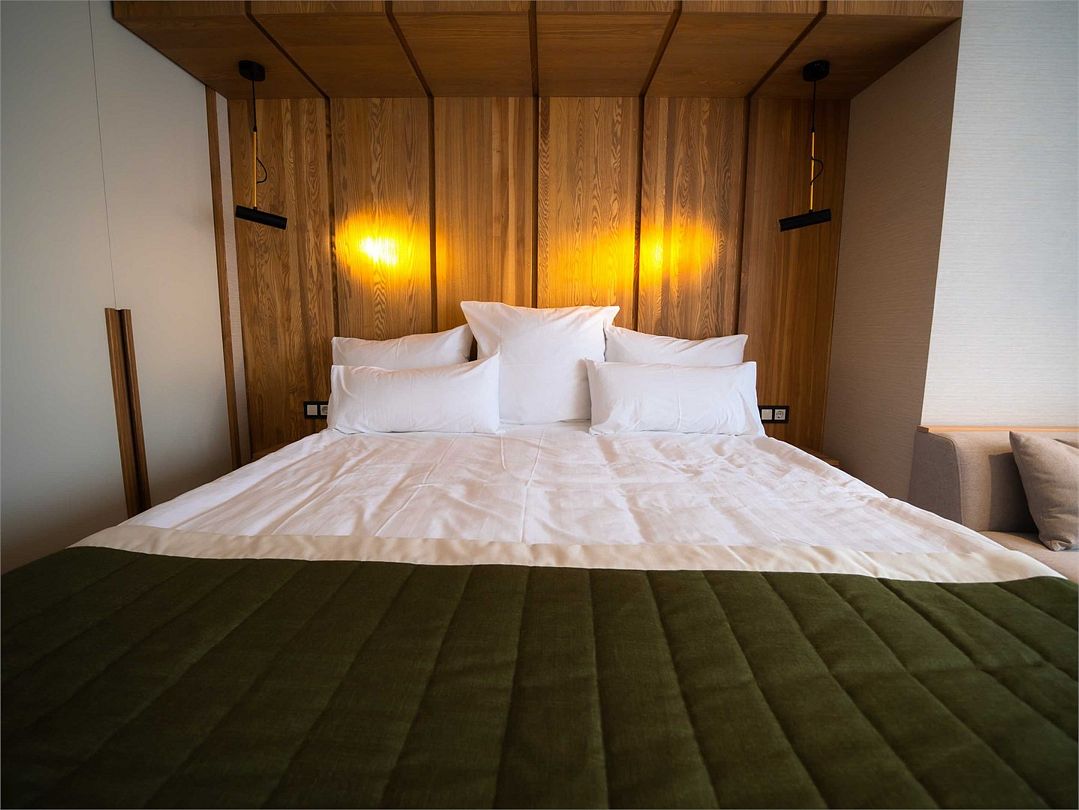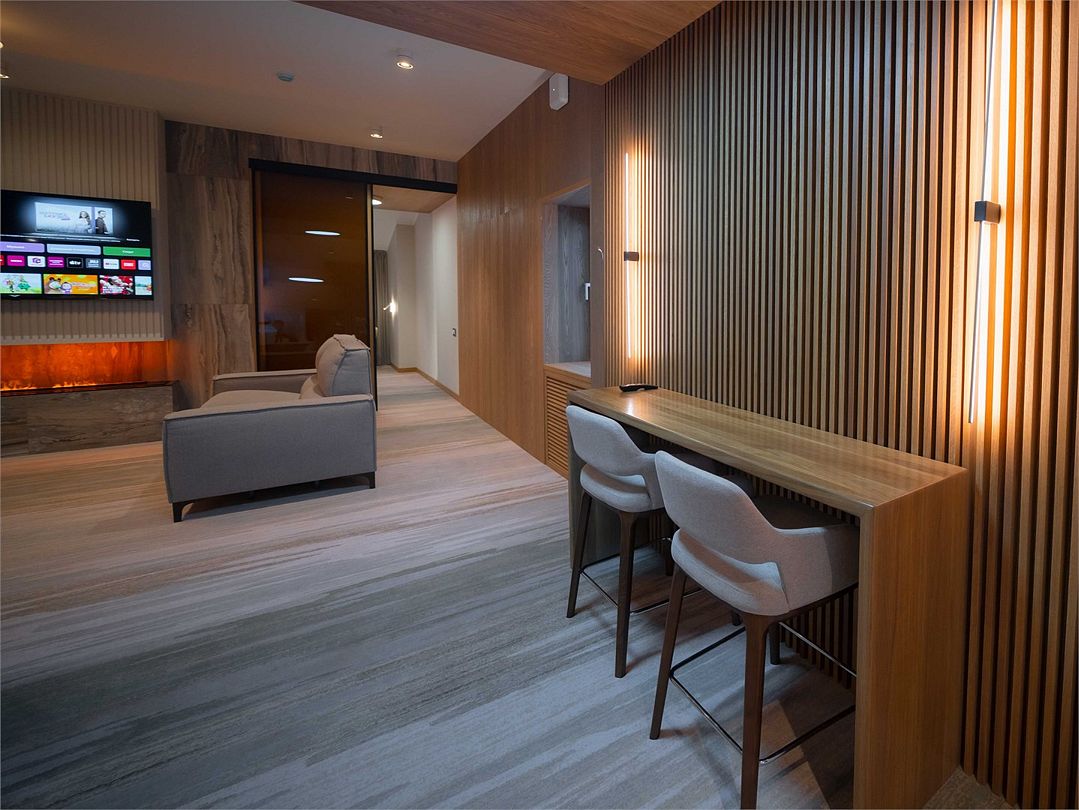 Suite с 2 спальнями и 2 ванными комнатами. Идеально для семейного размещения В каждой спальне есть кровать king-size, диван, который может использовать как дополнительное спальное место. Общая площадью 70 м2. Расположен на первом этаже рядом с библиотекой и детской игровой комнатой.