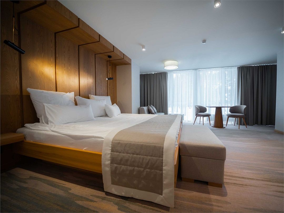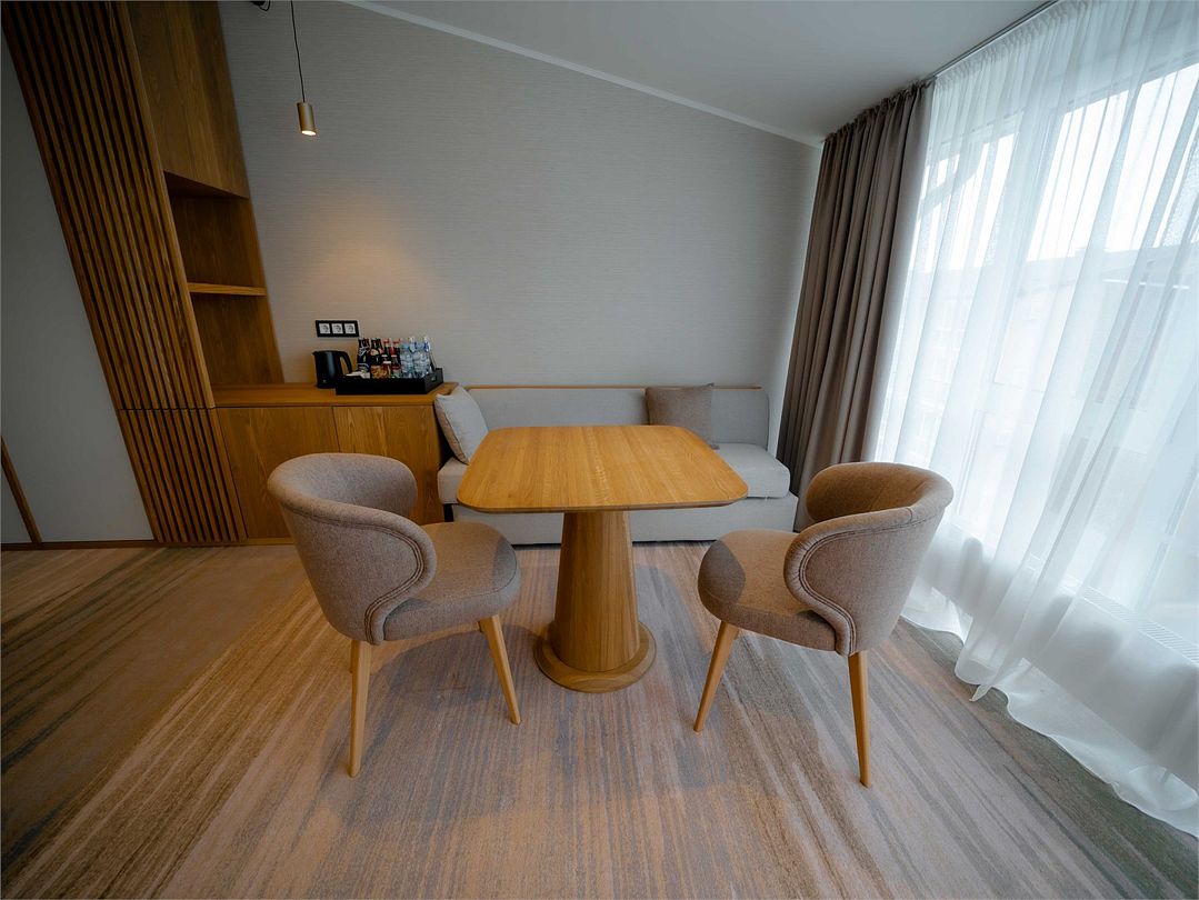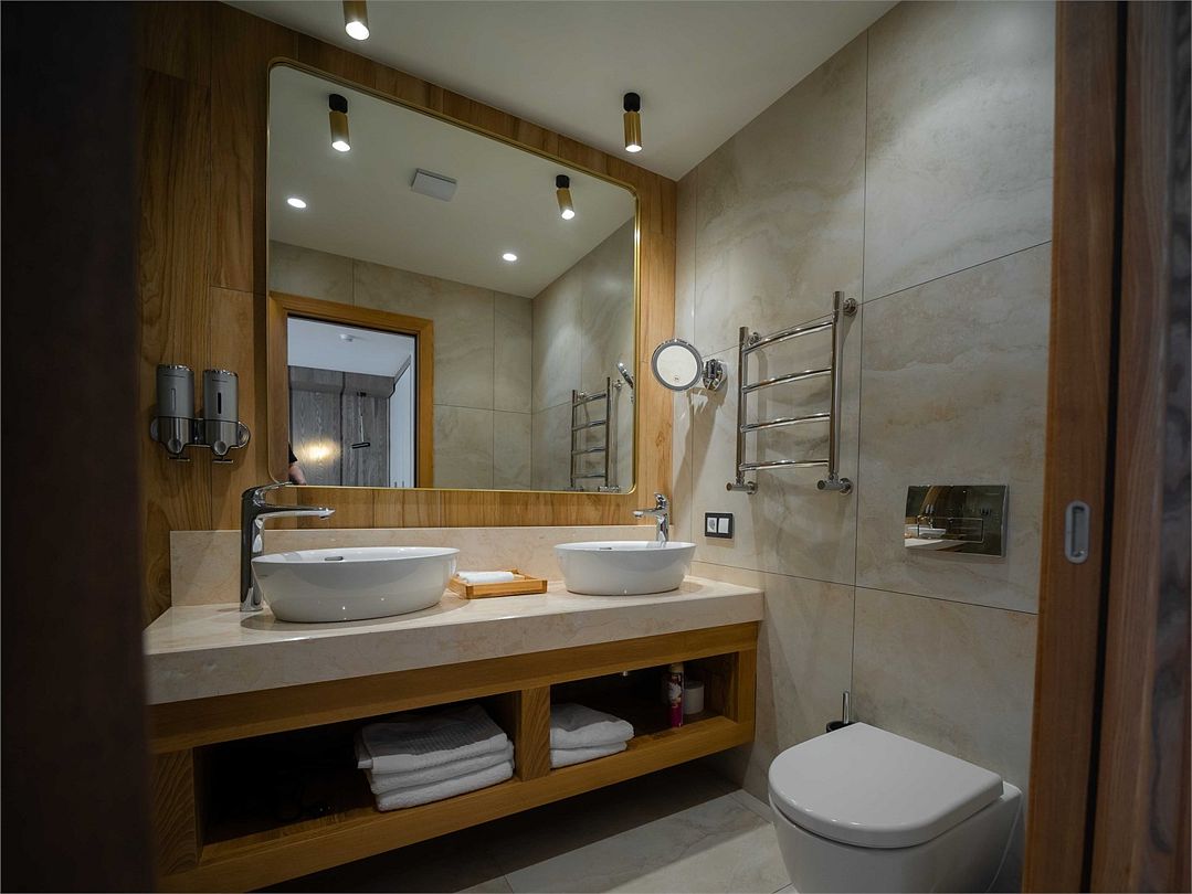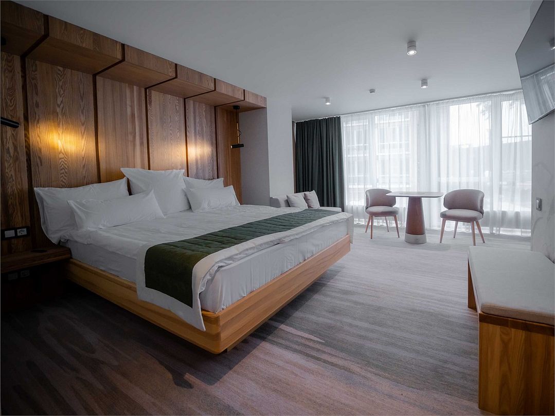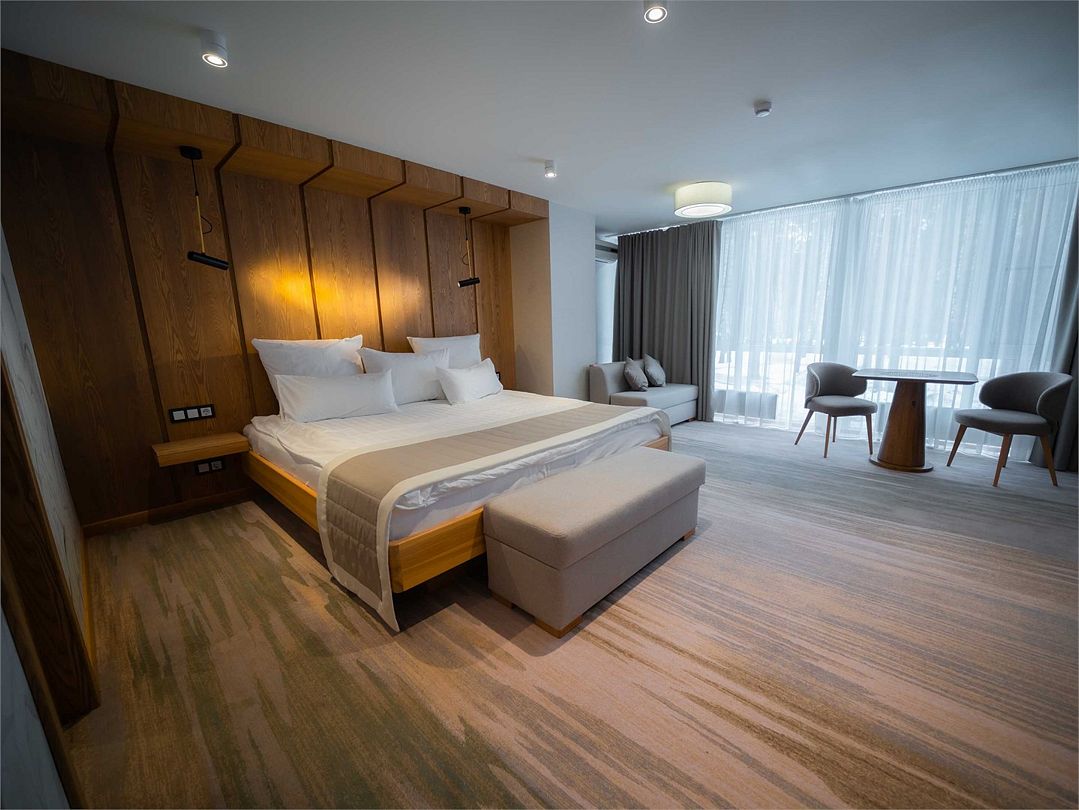 Suite с 2 спальнями и 2 ванными комнатами. Идеально для семейного размещения В каждой спальне есть кровать king-size, диван, который может использовать как дополнительное спальное место. Общая площадью 70 м2. Расположен на первом этаже рядом с библиотекой и детской игровой комнатой.