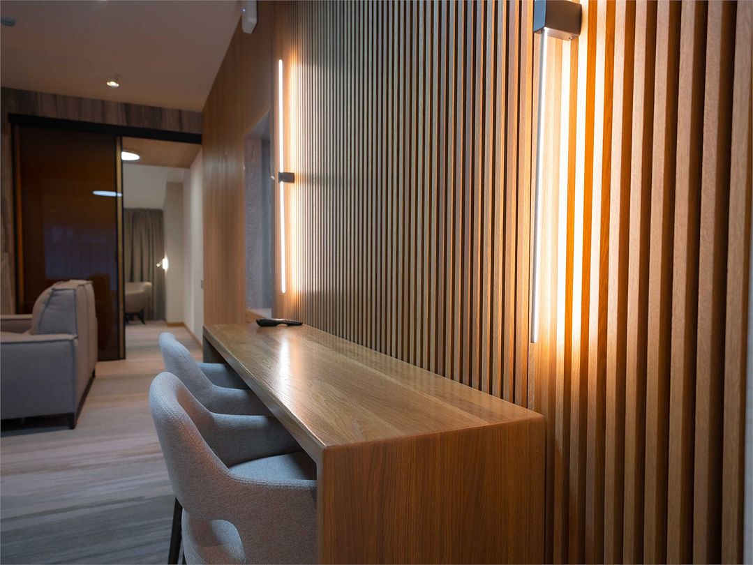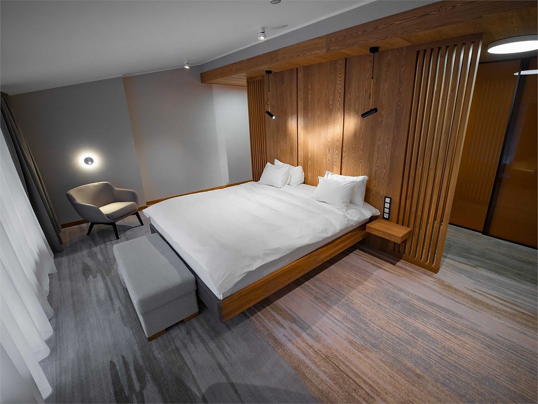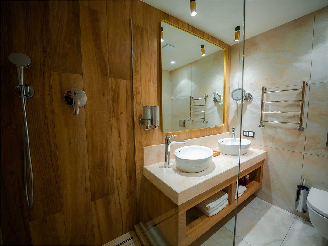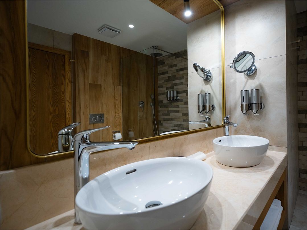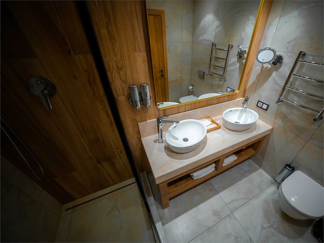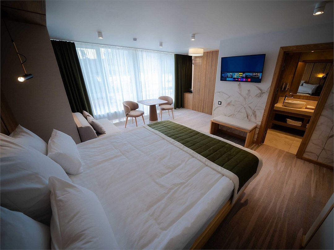 Suite с 2 спальнями и 2 ванными комнатами. Идеально для семейного размещения В каждой спальне есть кровать king-size, диван, который может использовать как дополнительное спальное место. Общая площадью 70 м2. Расположен на первом этаже рядом с библиотекой и детской игровой комнатой.