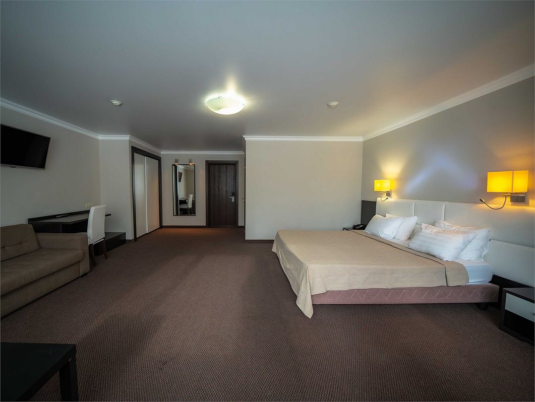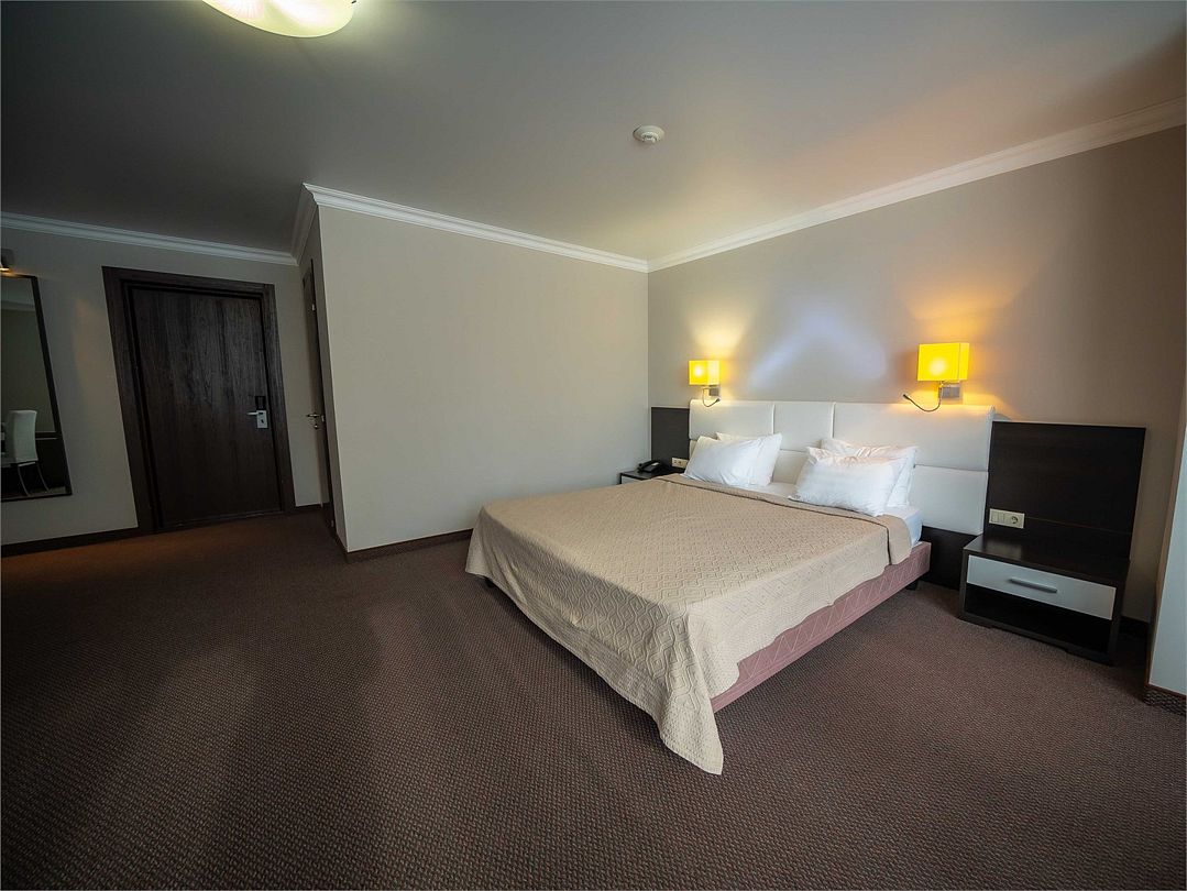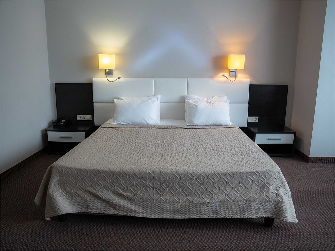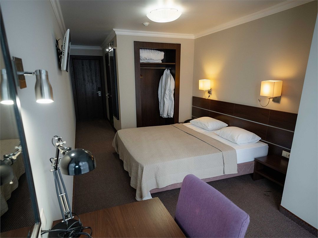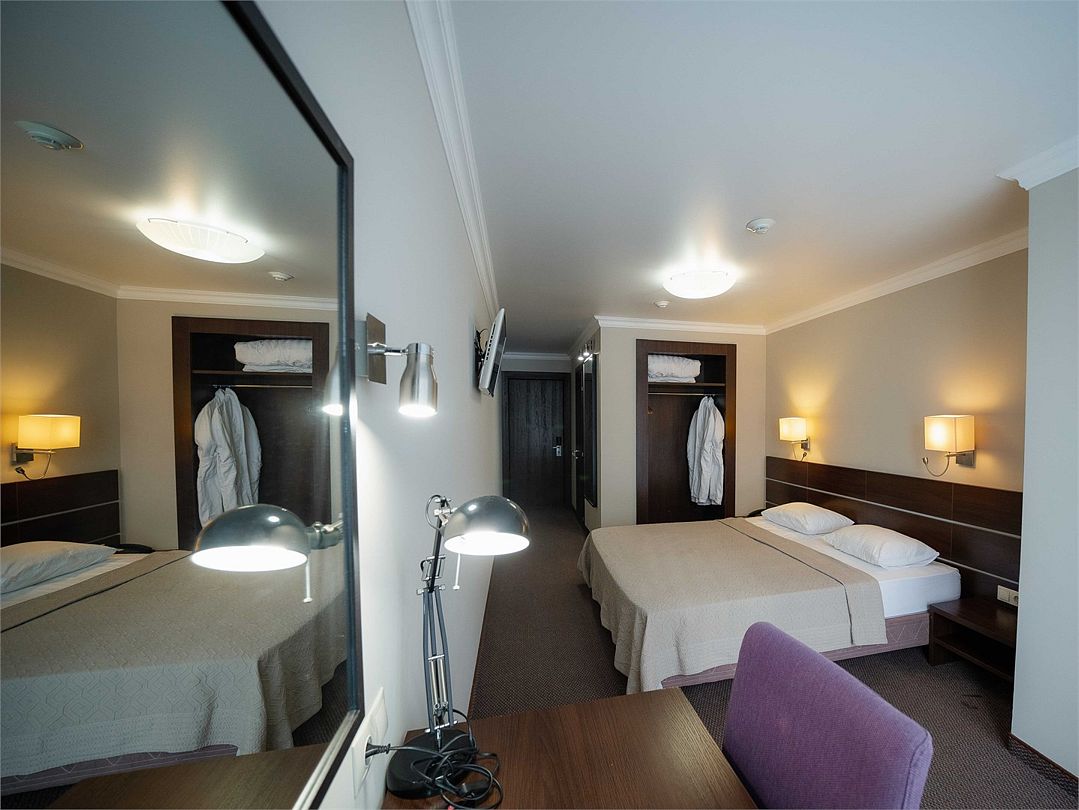 Номерной фонд поделен на несколько категорий. Все номера оборудованы спальными местами, а также современной техникой. Каждый подойдет для размещения с ребенком. Оснащение зависит от выбранной категории номера.