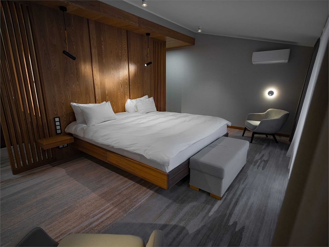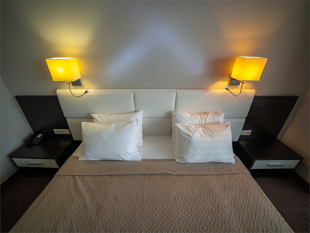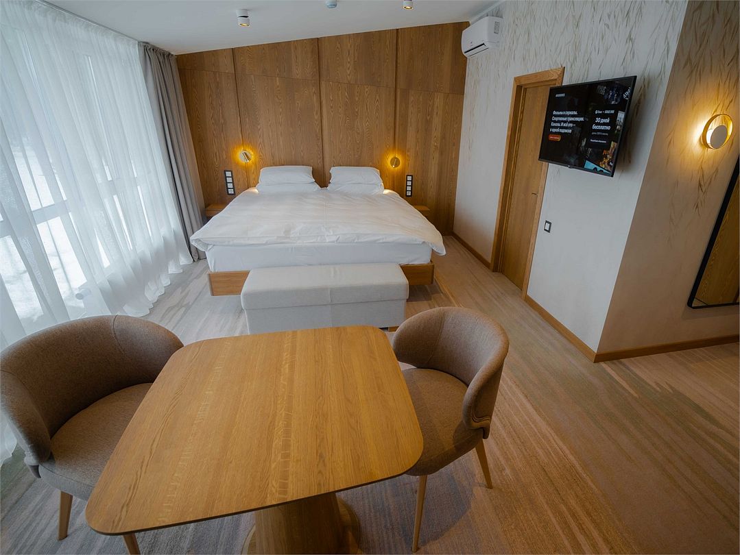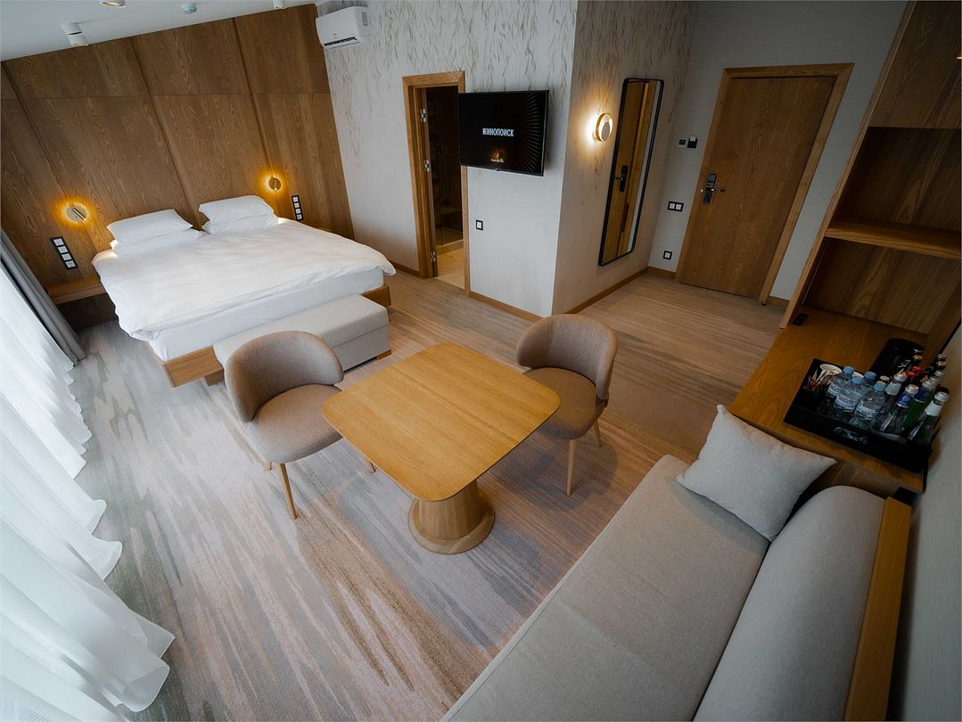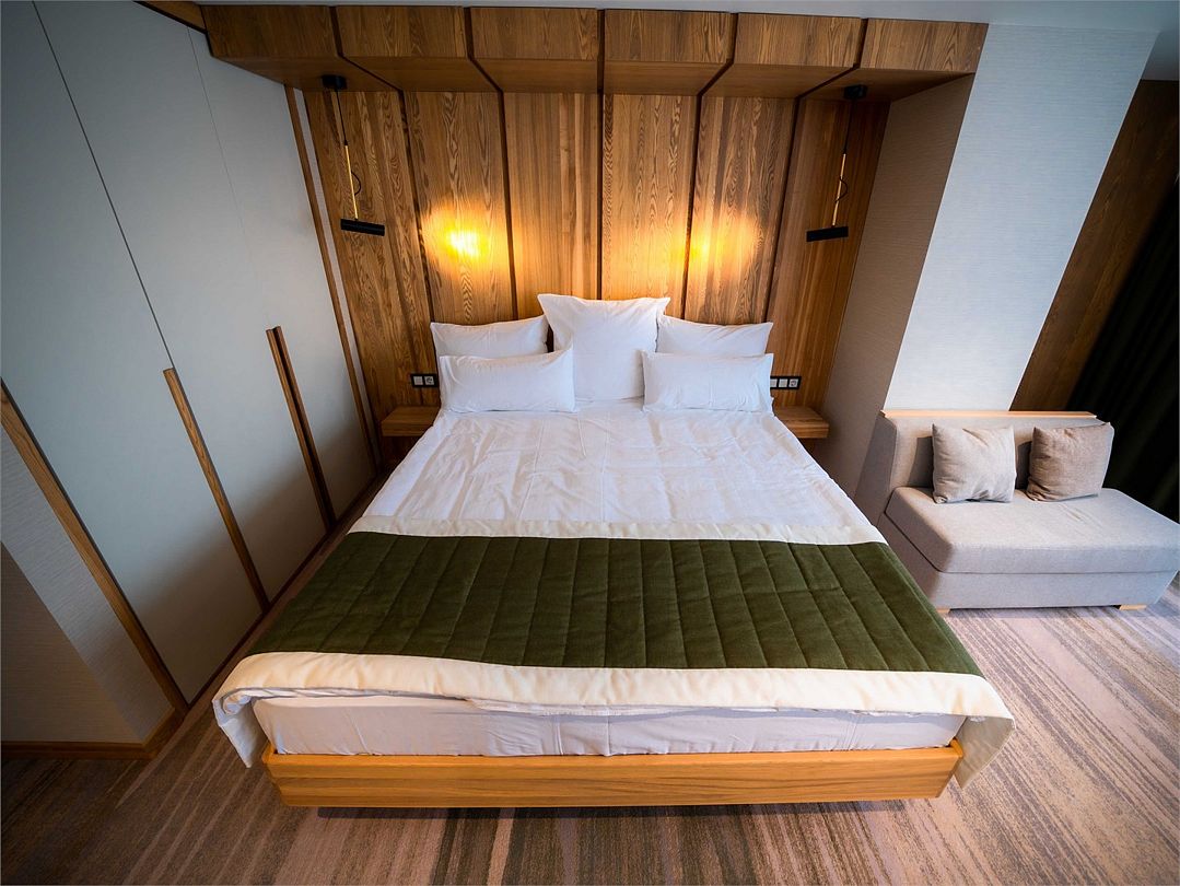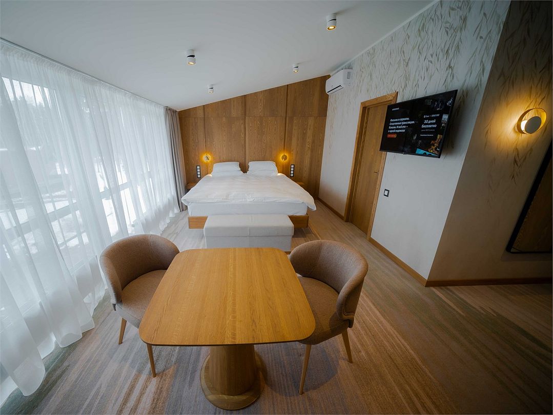 Номерной фонд поделен на несколько категорий. Все номера оборудованы спальными местами, а также современной техникой. Каждый подойдет для размещения с ребенком. Оснащение зависит от выбранной категории номера.