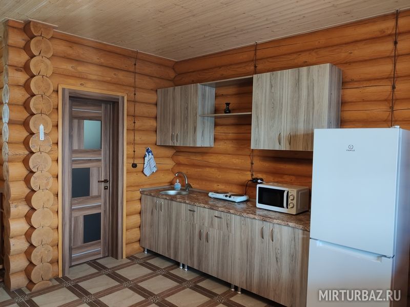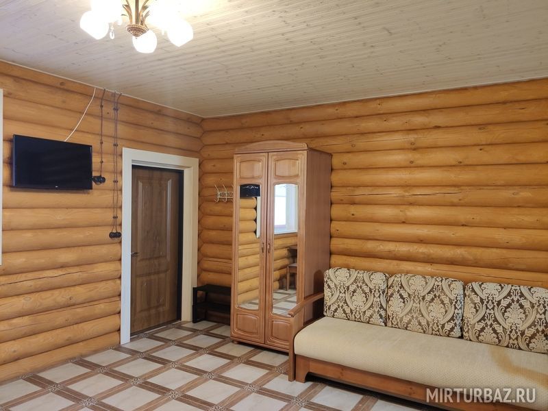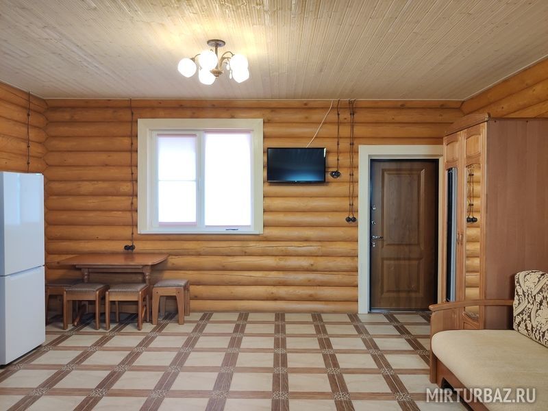 Всего 4 комфортабельных номера (общая площадь каждого 45 м. 2 включая веранду – 12 м. 2 ) в срубе из оцилиндрованного бревна вместимостью до 5 человек каждый с отдельным входом и собственной верандой. Номера оборудованы всей необходимой бытовой техникой, а также местом для самостоятельного приготовления пищи из своих продуктов. Рекомендуемый отдых - семейный отдых, отдых с детьми. Предназначен для круглогодичного проживания (отопление – теплый пол).