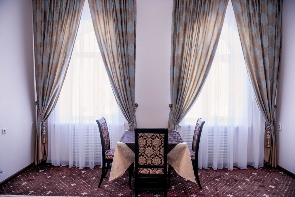 Просторный, красивый двухкомнатный номер. Общей площадью 66,6 кв.м. с двухспальной кроватью и диваном. В котором могут разместиться один или два человека (за отдельную стоимость предоставляем 2 доп. места на 3-4 гостя, без включенного завтрака. Завтрак приобретается отдельно при заселении). Дети до 6 лет, без отдельного места проживают бесплатно. Одним из достоинств этого номера является просторный балкон с летней мебелью, что позволит отдыхать на свежем воздухе в любое время суток. Удобства в номере:кондиционер, шкаф/гардероб, фен, холодильник, телефон, рабочий стол, телевизор с плоским экраном (кабельные каналы), тапочки, халат, полотенца, туалетные принадлежности. Есть мини-бар (оплачивается отдельно по прейскуранту). В стоимость номера входит завтрак, посещение бильярда, бассейна и тренажерного зала.Услуги и удобства