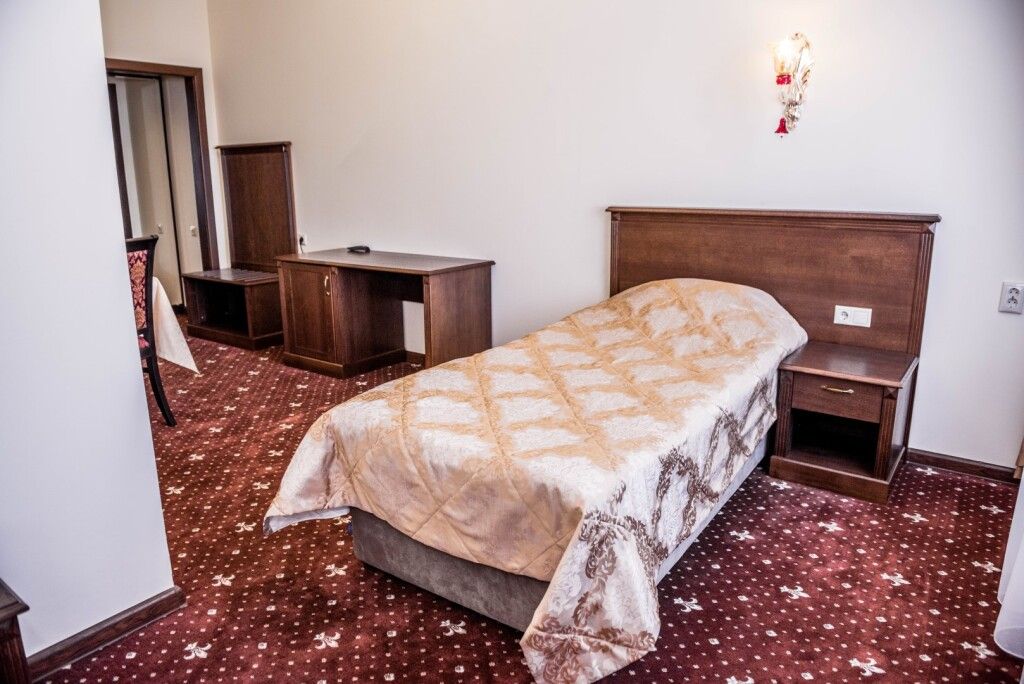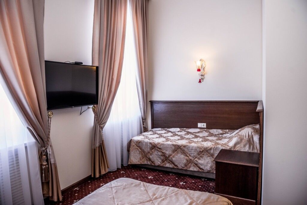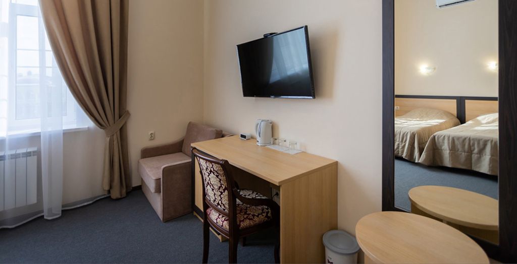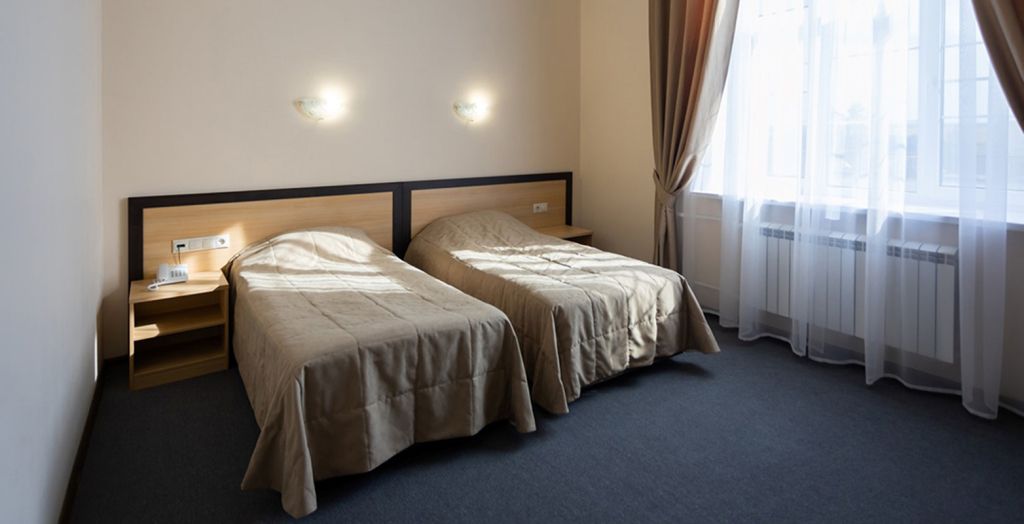 Однокомнатный двухместный номер с 2-мя односпальными кроватями, общей площадью 27,1 кв.м. в котором могут разместиться один или два человека (за отдельную стоимость предоставляем доп. место на 3 гостя без включенного завтрака. Завтрак приобретается отдельно при заселении). Дети до 6 лет, без отдельного места проживают бесплатно. Удобства в номере: кондиционер, шкаф/гардероб, фен, холодильник, телефон, рабочий стол, телевизор с плоским экраном (кабельные каналы), тапочки, халат, полотенца, туалетные принадлежности. Есть мини-бар (оплачивается отдельно по прейскуранту). В стоимость номера входит завтрак, посещение бильярда, бассейна и тренажерного зала. ЗабронироватьУслуги и удобства