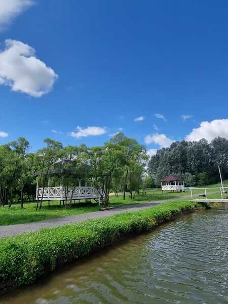 Семейный отдыхДостоинстваПерсонал отзывчивый, добродушный, профессиональный. Очень вкусная и разнообразная еда, СПА зона - классное дополнение к отдыху! Удобные креселки на берегу пруда для комфортной рыбалки.