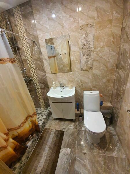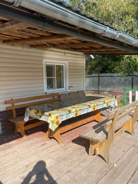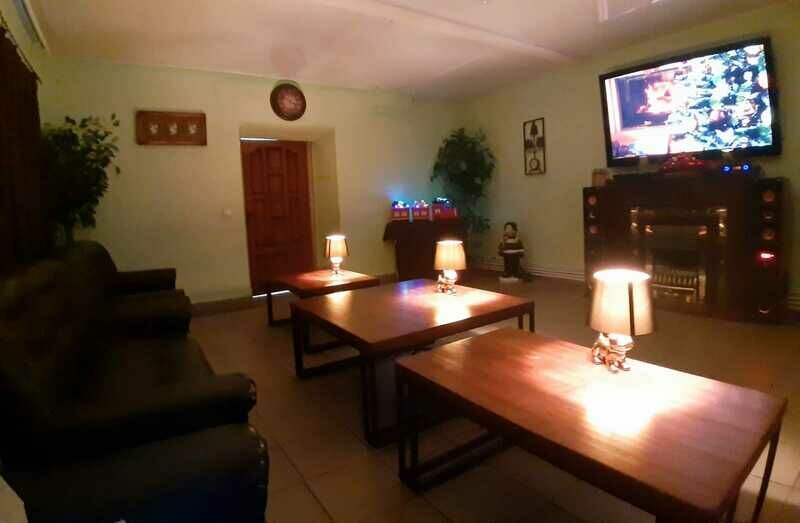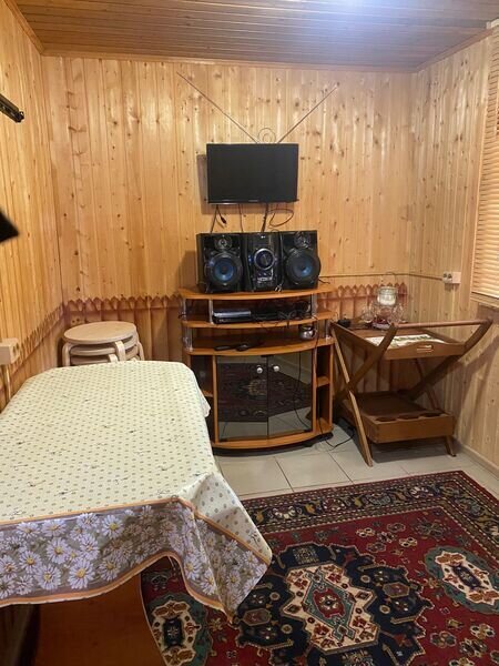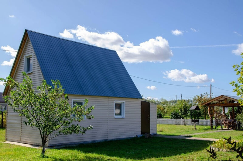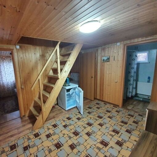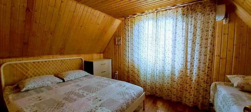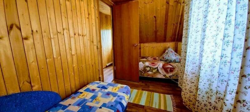 Еще 2 спальные комнаты находятся на 2 этаже дома. Данный гостевой дом позволяет легко разместить 8 человек. Причем, при необходимости, есть возможность размещения дополнительного места. Дом укомплектован постельными принадлежностями, туалетными аксессуарами, наборами полотенец. На придомовой территории есть индивидуальная беседка для отдыха с мангалом и садовые качели.