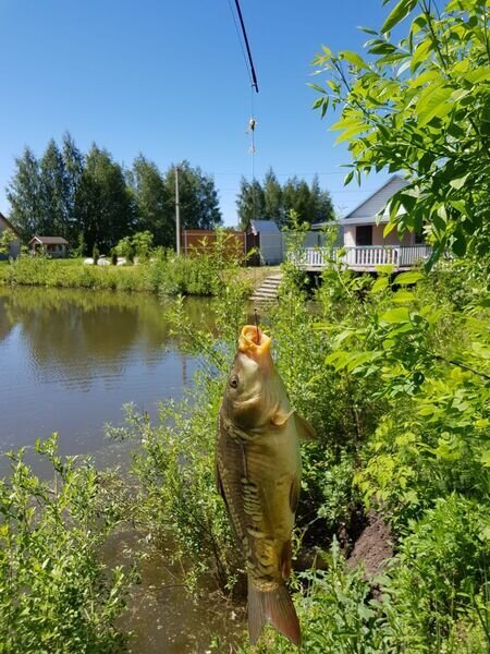 Кроме речки ещё открыли пруды для рыбалки(только для отдыхающих). В прудах: карась, карп, толстолобик, белый амур.