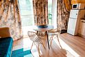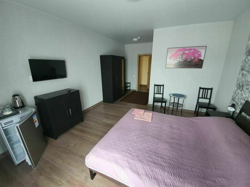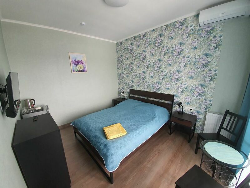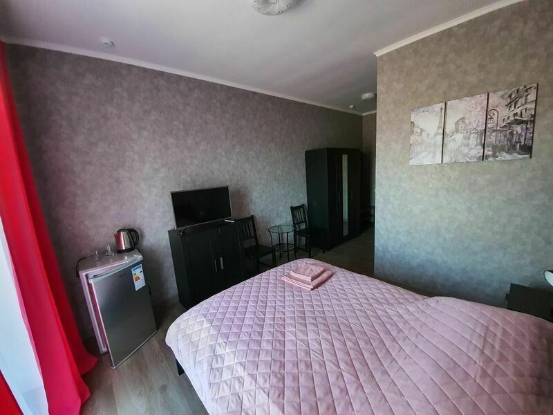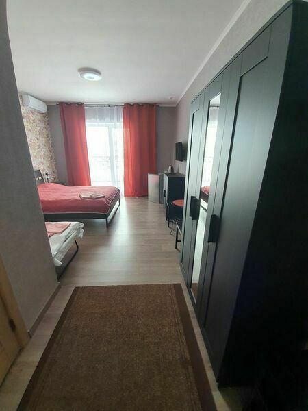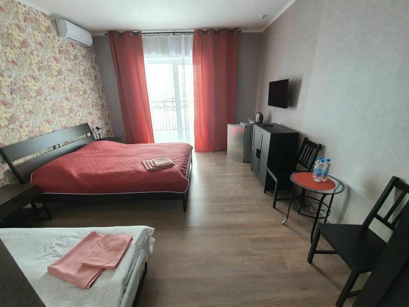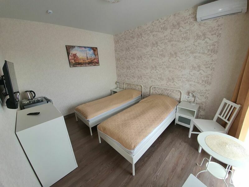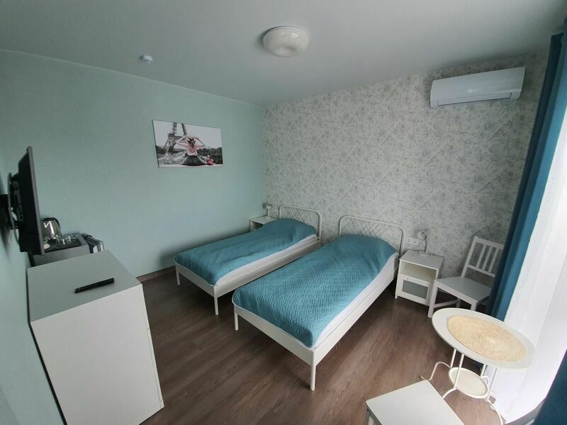 Однокомнатный номер с выходом на балкон, небольшой прихожей и совмещенным санузлом. Номер предназначен для проживания 1-го или 2-х человек. Номер оборудован двуспальной кроватью 160х200 или 2-мя кроватями 90х200 . Удобства в номере: 2 прикроватные тумбочки, шкаф/гардероб, журнальный столик, 2 стула, в прихожей вешалка для одежды с полкой для обуви, санузел с душем и туалетными аксессуарами. В номере есть кондиционер, холодильник, чайник, набор чайной посуды на 2 персоны, телевизор, 2 настольные лампы, набор для душа, полотенца.