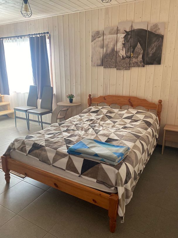 Еще 2 спальные комнаты находятся на 2 этаже дома. В каждой имеется: двуспальная кровать, прикроватные тумбочки, комод. Дом укомплектован постельными комплектами, туалетными аксессуарами, наборами полотенец. На придомовой территории есть индивидуальная беседка для отдыха с мангалом и садовые качели. В доме возможно предоставление 1-го дополнительного места.
