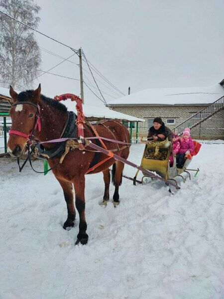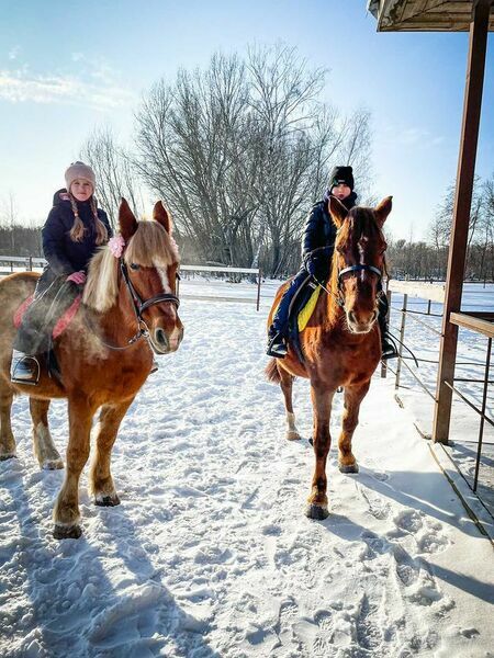 В усадьбе вы также можете посетить конный двор — конюшню. Здесь вы увидите лошадей и даже сможете выйти с ними на прогулку. Зима — лучшее время, чтобы прокатиться в запряженных санях, летом удобнее и интереснее кататься верхом. Вас научат обращаться с лошадьми, садиться на них верхом и передвигаться. Также вам предлагают проведение занятий с детьми.