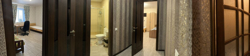 В каждой комнате: душ, туалет, микроволновая печь, чайник, телевизор, бесплатный Wi-Fi, в зимний период времени теплые полы.