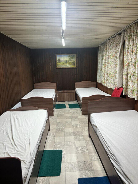 36 мест, из них 28 мест одноместные кровати и 4 кровати двухъярусные, 4-е комнаты по 9 человек в комнате живет (4 душа, 4 туалета общий коридор, холодильник).
