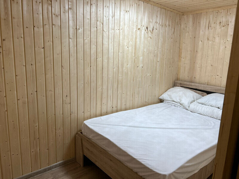 Отдельно стоящий дом на 5 мест. Две спальные комнаты, прихожая-коридор, обеденный стол, кухня для приготовления еды, микроволновая печь, чайник, холодильник, телевизор, бесплатный Wi-Fi.