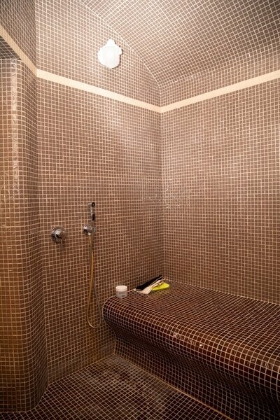 Хаммам – наиболее насыщенная влагой баня из всех существующих в мире. Нормальной влажность здесь считается в пределах 80-100%, и это при температуре всего 40-45°С.