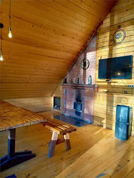 Читать полностьюРусская баня, отапливаемая дровами, приглашает вас окунуться в атмосферу уюта и комфорта. В парной вас ожидает горячая атмосфера, а также возможность расслабиться в зоне отдыха, где есть все необходимое для комфортного времяпровождения: стол, скамейки, телевизор и музыкальная колонка.