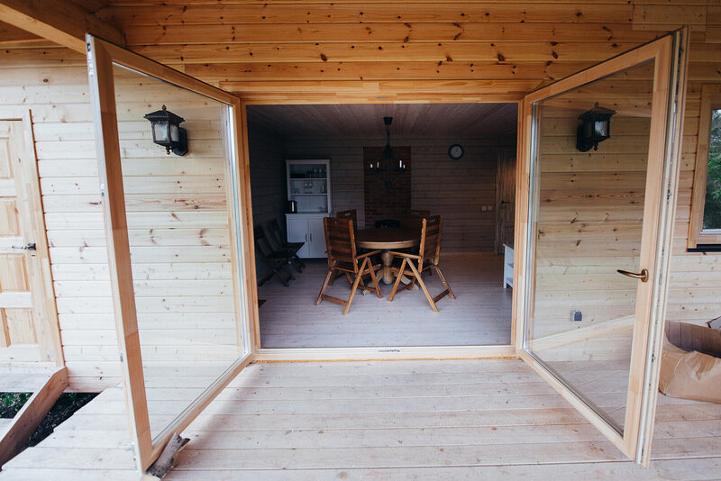 Если вам необходимо разместить 10-12 человек, то можно забронировать обе половины дома, в случае если правая половина свободна (Земляника и Гортензия).