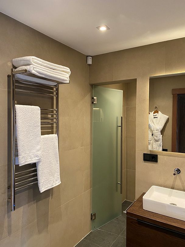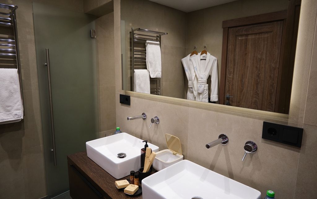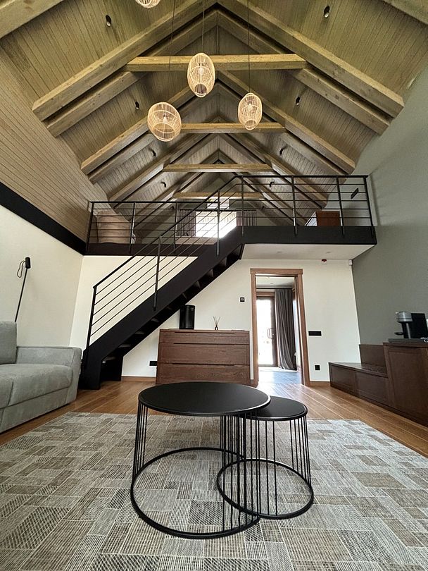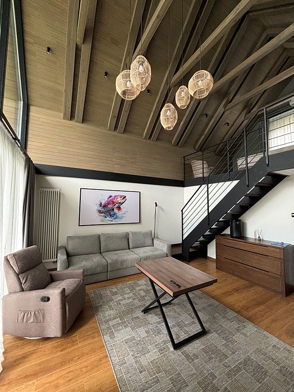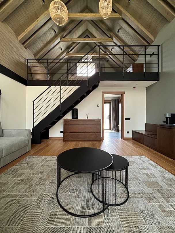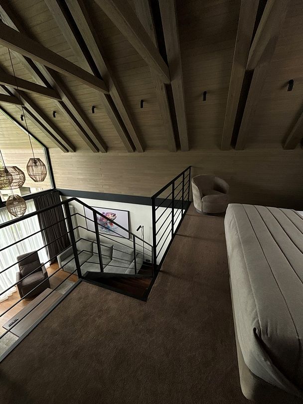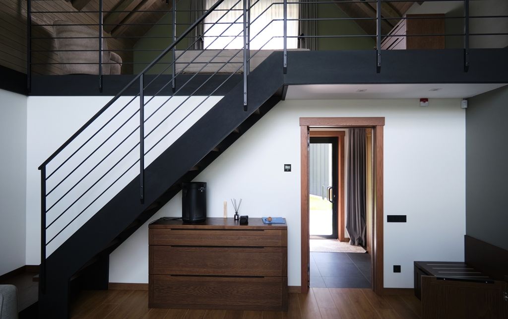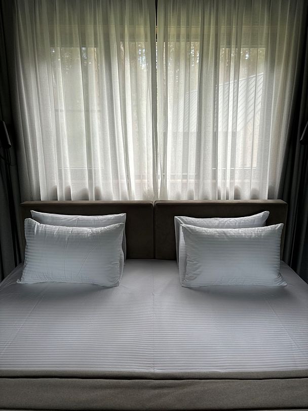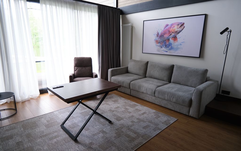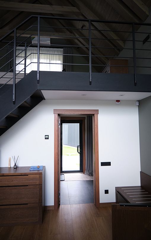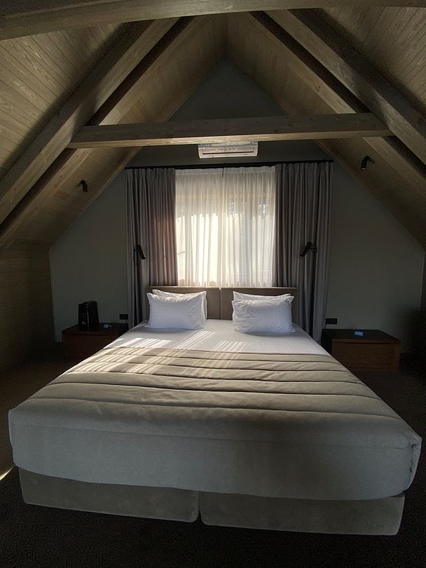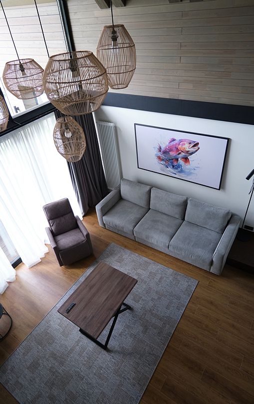 Здесь вы будете проживать в просторном стильном доме с панорамными окнами, откуда, в зависимости от вашего выбора домика, открывается захватывающий вид на озеро или лес. Внутри: современная техника, удобная мебель и все необходимое для беззаботного отдыха. Забудьте о бессоннице на ортопедических матрасах комфортных подушках, созданных специально для вас. Ванные комнаты оснащены тёплыми полами; есть тропический душ и гигиенический душ, мягкие полотенца и роскошные халаты дополнят картину идеального отдыха. А эксклюзивная линейка косметических средств для душа порадует даже самых взыскательных гостей.