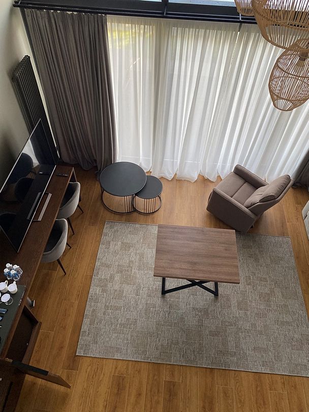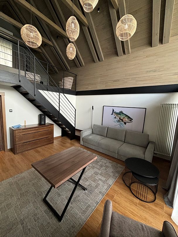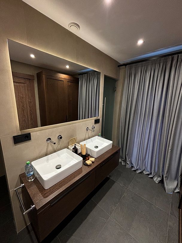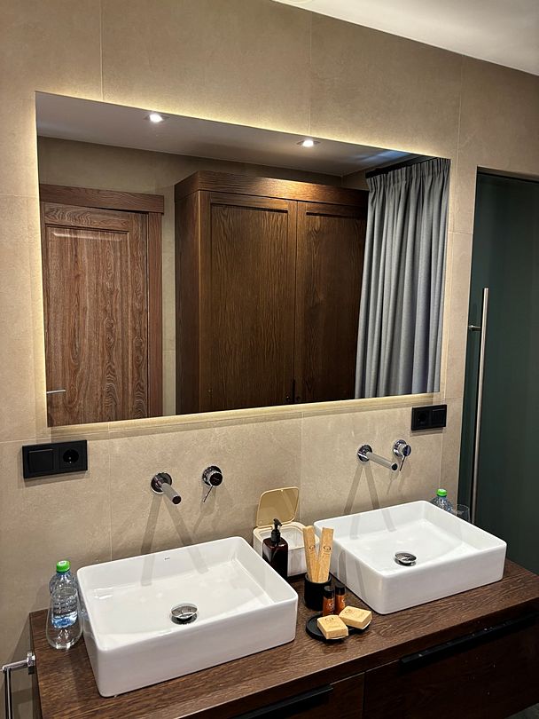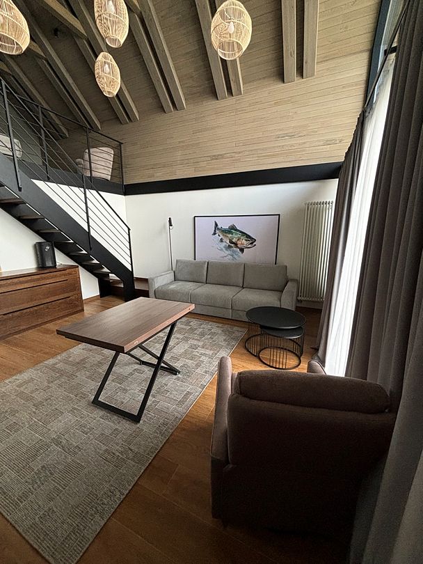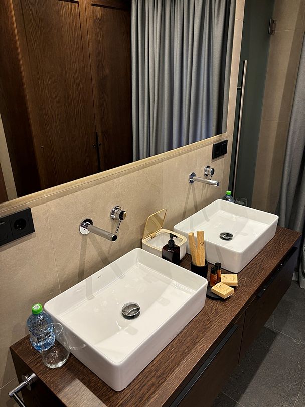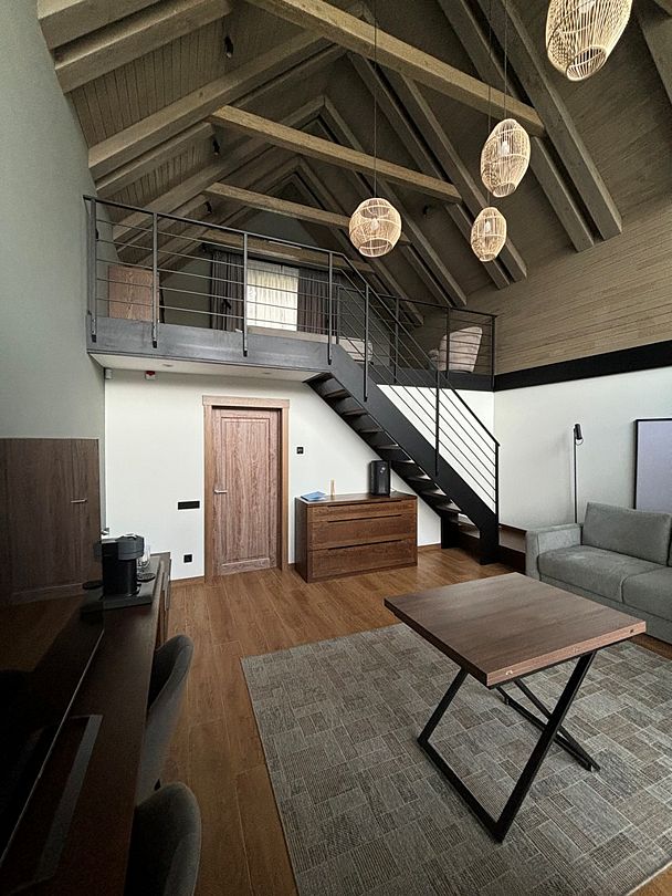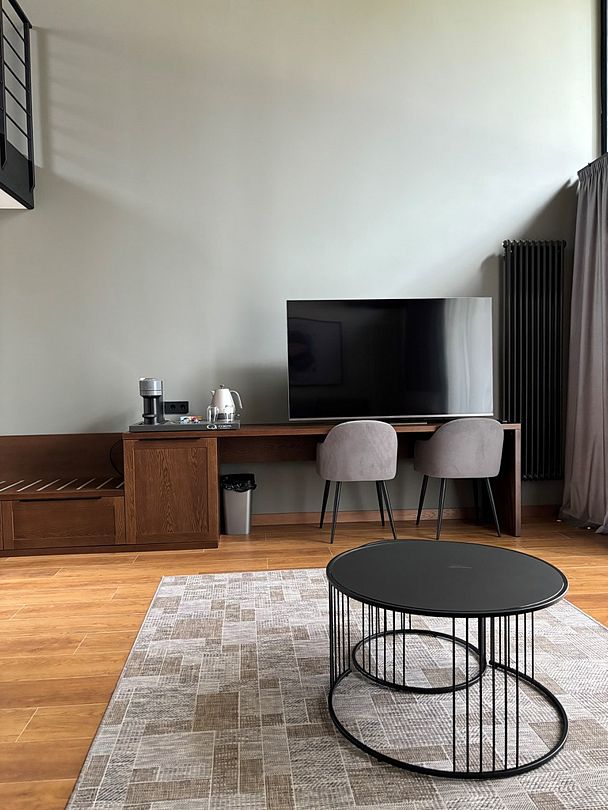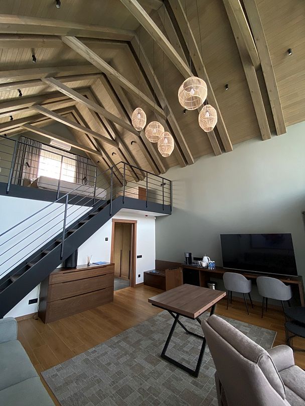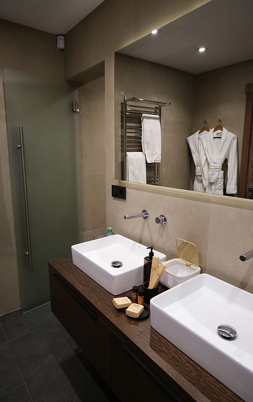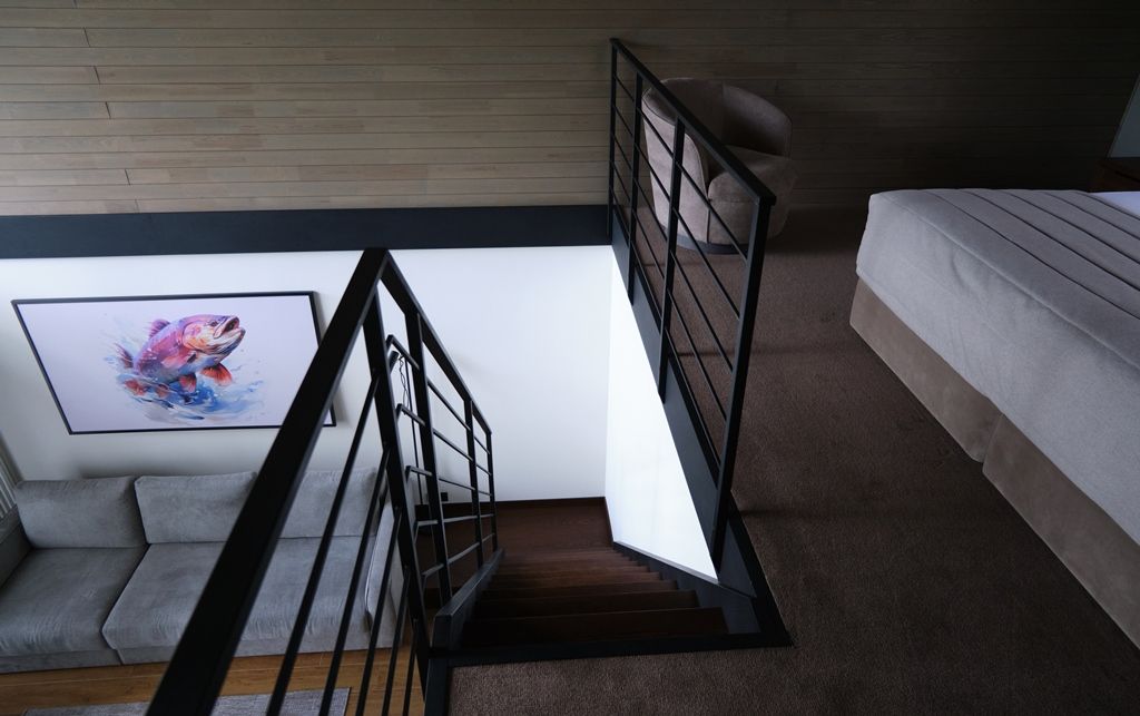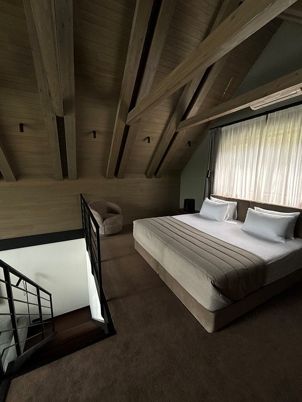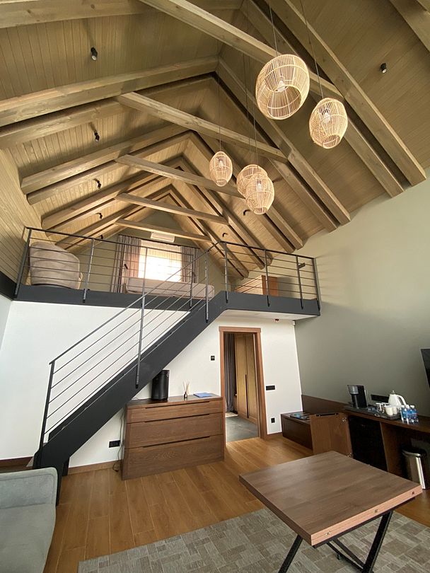 Здесь вы будете проживать в просторном стильном доме с панорамными окнами, откуда, в зависимости от вашего выбора домика, открывается захватывающий вид на озеро или лес. Внутри: современная техника, удобная мебель и все необходимое для беззаботного отдыха. Забудьте о бессоннице на ортопедических матрасах комфортных подушках, созданных специально для вас. Ванные комнаты оснащены тёплыми полами; есть тропический душ и гигиенический душ, мягкие полотенца и роскошные халаты дополнят картину идеального отдыха. А эксклюзивная линейка косметических средств для душа порадует даже самых взыскательных гостей.