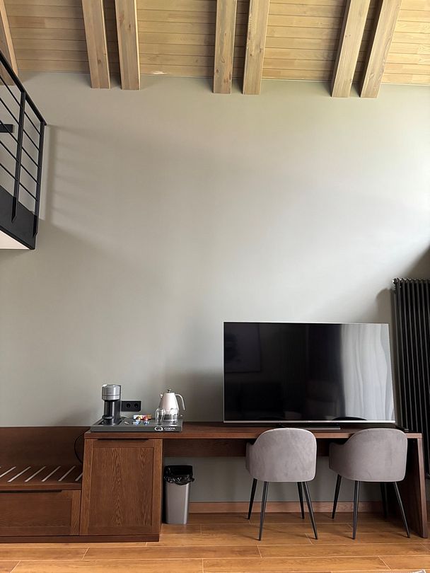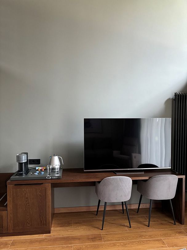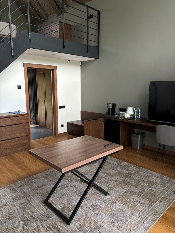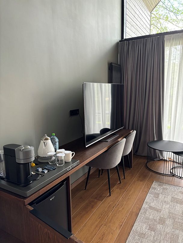 Начните свой день с бодрящего аромата свежесваренного кофе! Каждый дом оснащен кофемашиной, чайной станцией с коллекцией изысканных брендированных чаев и шоколадом для сладкоежек. А в мини-баре вас ждут прохладительные напитки на любой вкус.