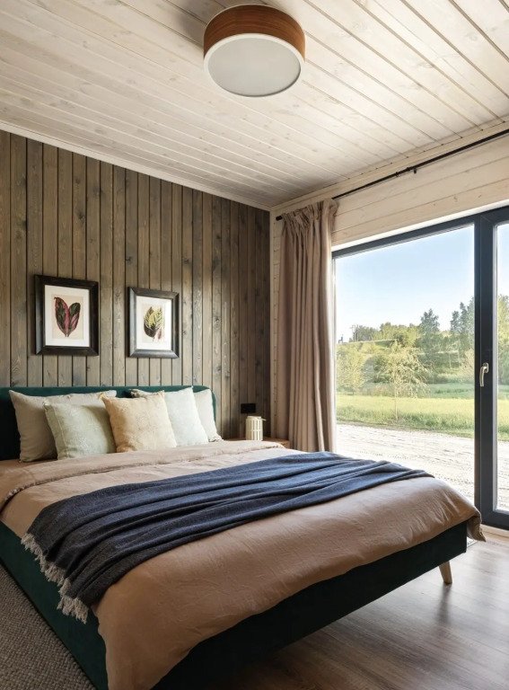 Проживание возможно в домах с мини-кухней, гостиной зоной, спальными местами и ванной комнатой. Предусмотрены панорамные окна. Wi-Fi и телевизор отсутствуют.