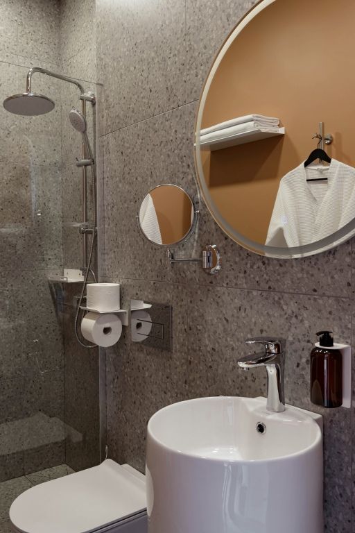 Номер уютно обставлен и оснащён необходимым, чтобы отдохнуть после долгого и насыщенного дня. Имеются телевизор, мини-бар и халат. Перечисленные услуги есть не во всех номерах.