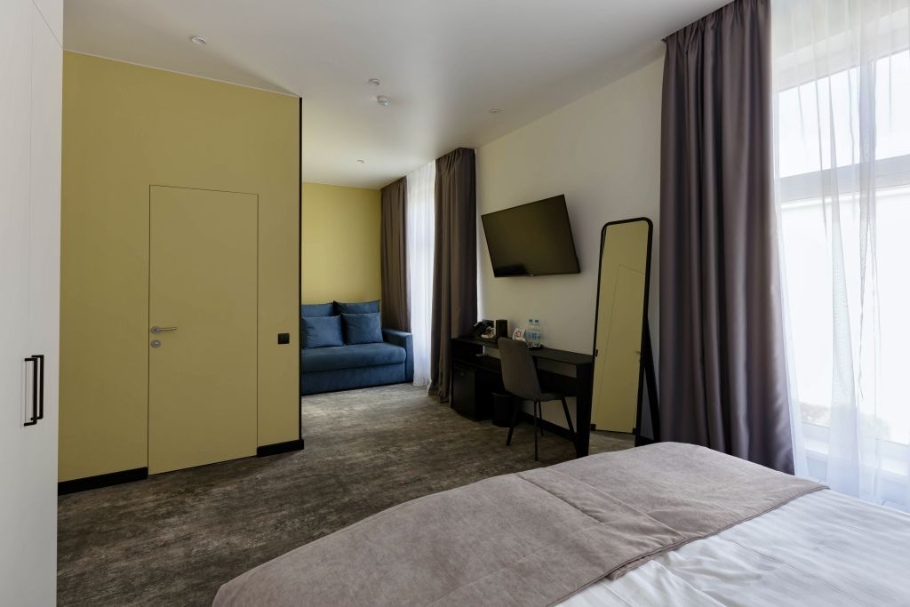 Просторный, оснащенный всеми необходимыми удобствами номер для комфортного проживания.