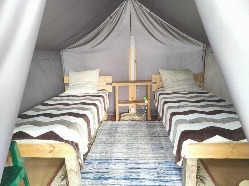 - Две односпальные кровати с матрасами, подогреваемыми в прохладные ночи, гарантируют приятный сон после долгого дня на свежем воздухе.