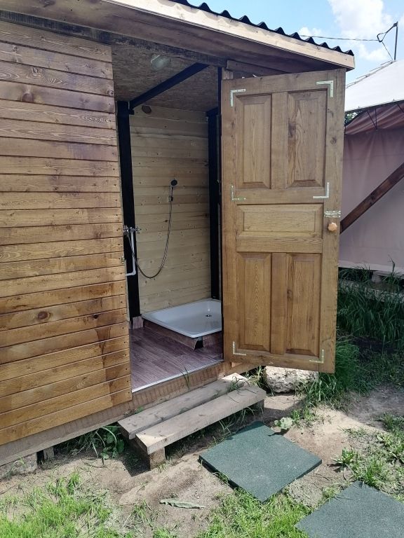 - Санитарный узел и душ находятся на территории.