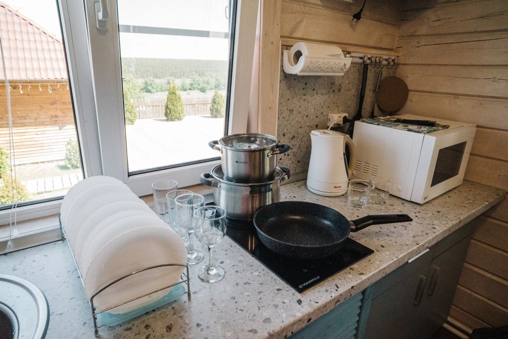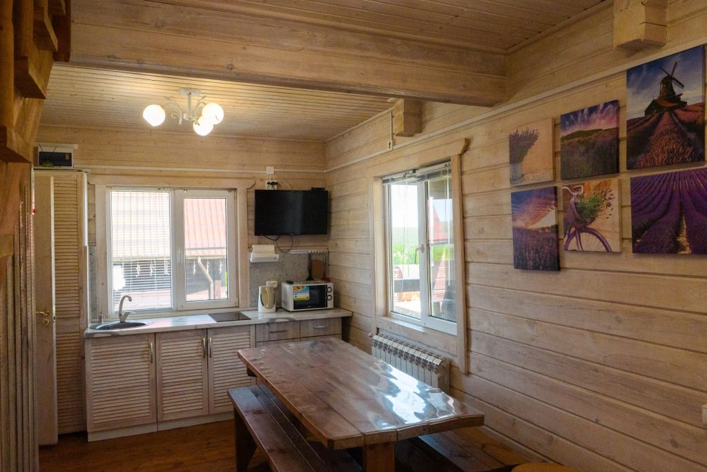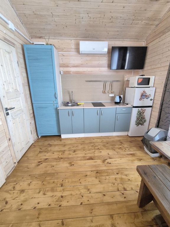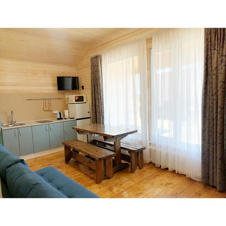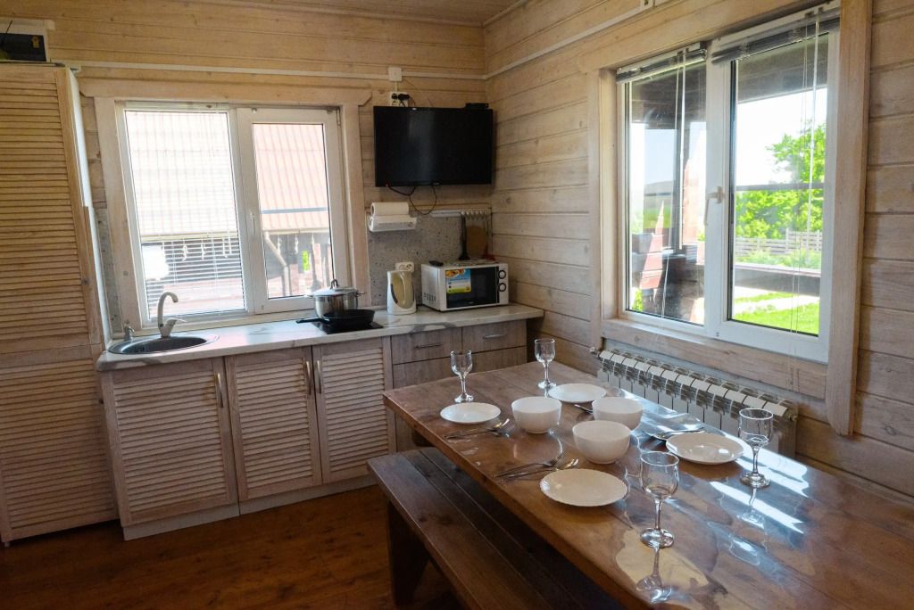 Гостинная-кухня оборудована всем необходимым для хорошего отдыха (посуда, чайник, холодильник, эл. плита, а также множество полезных мелочей необходимых для отдыха за городом).