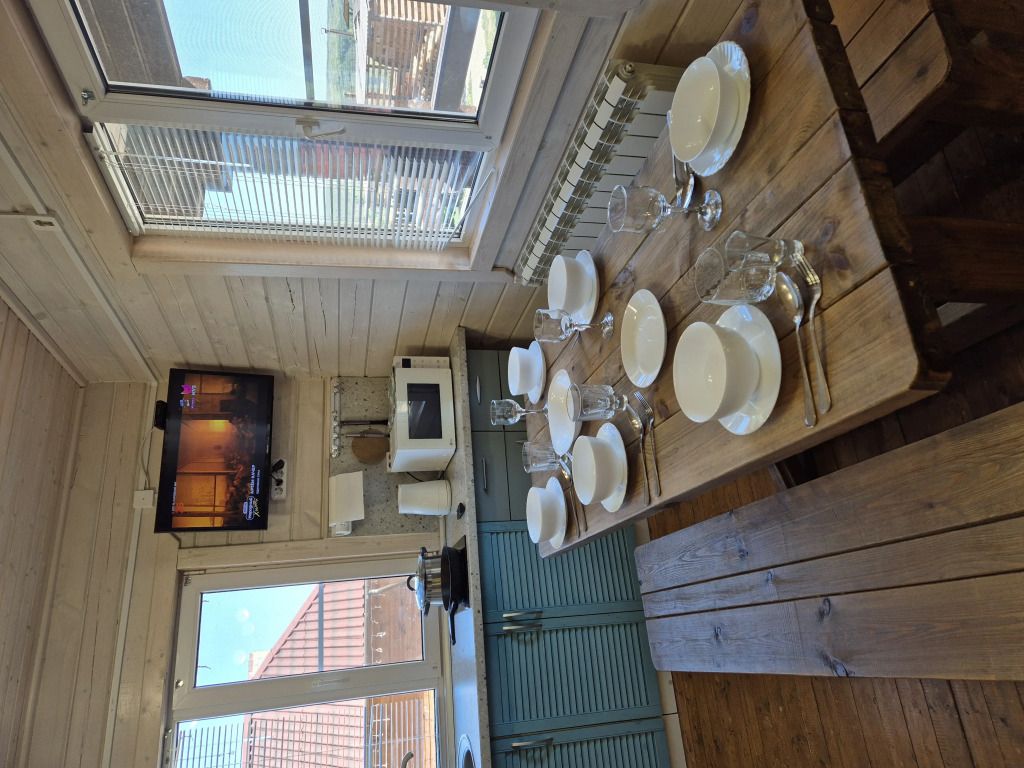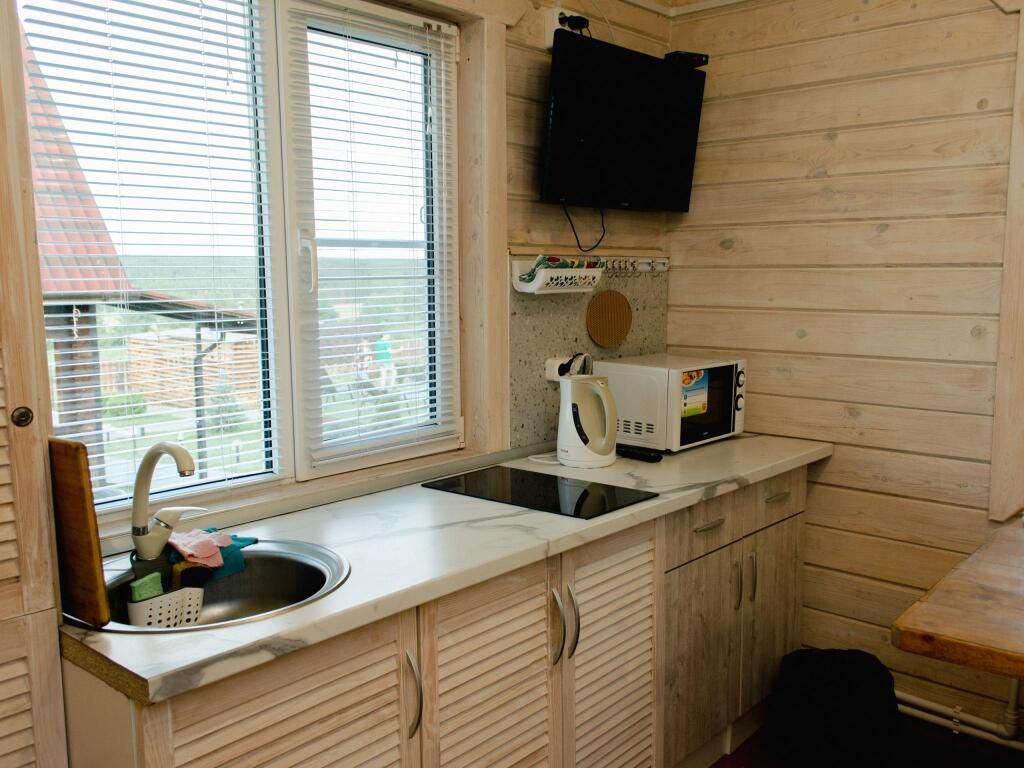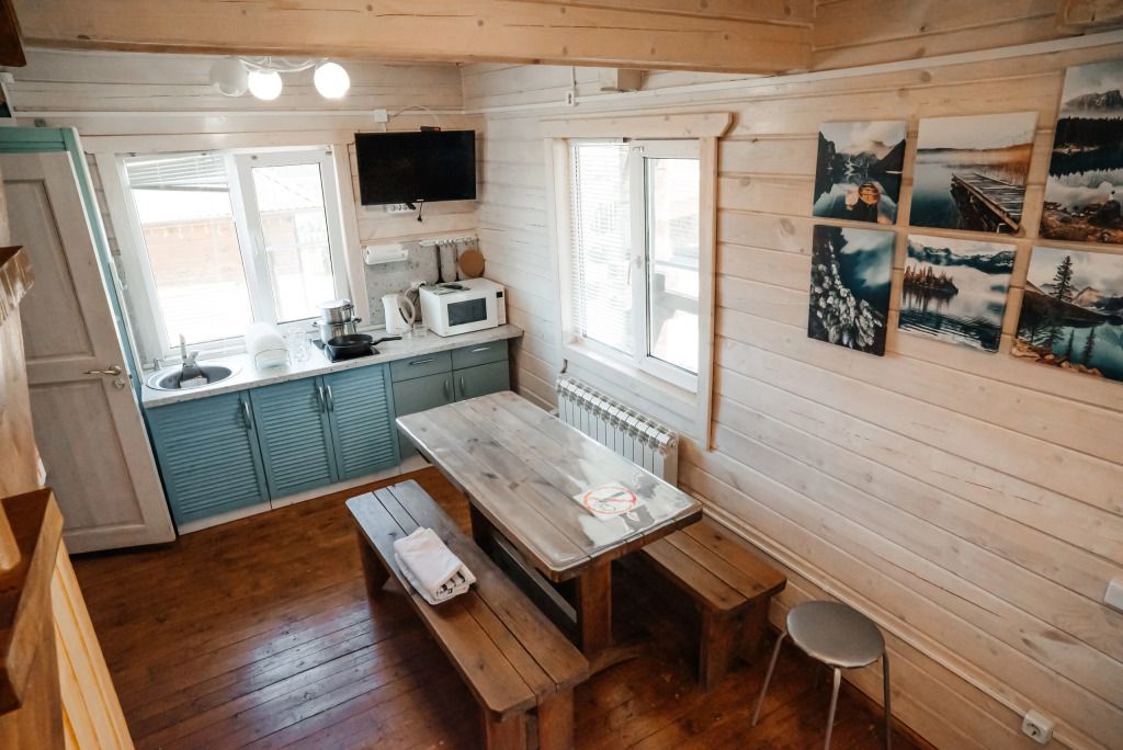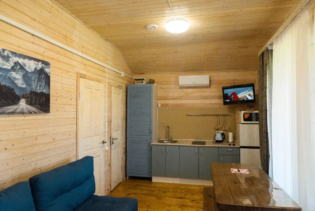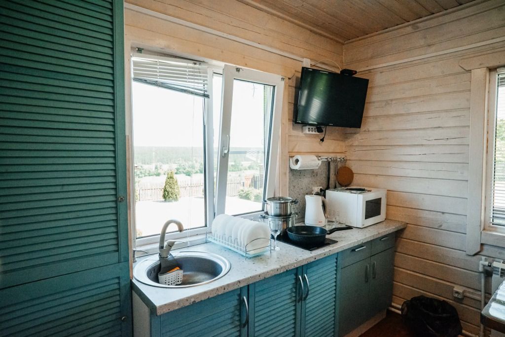 Гостинная-кухня оборудована всем необходимым для хорошего отдыха (посуда, чайник, холодильник, эл. плита, а также множество полезных мелочей необходимых для отдыха за городом).