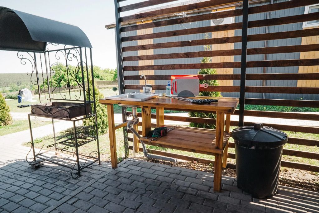 Мангальная зона для приготовления блюд как на открытом огне, так и блюд в казане. Это уютное место находится рядом с детской площадкой, в мангальной зоне есть свет, вода, удобная мебель.