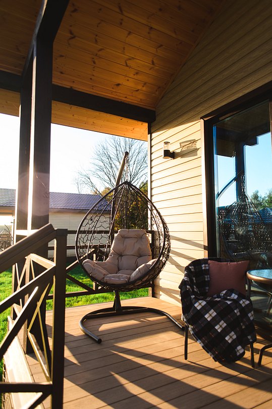 Также цифровое тв, телевизор со Smart TV, светильник, настольные лампы, водонагреватель, частный двор, терраса с качелями, наборы для пикника на 6 персон.