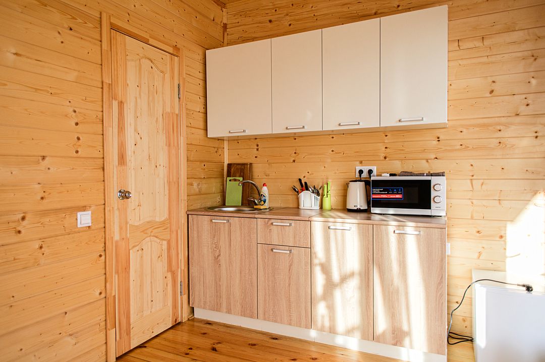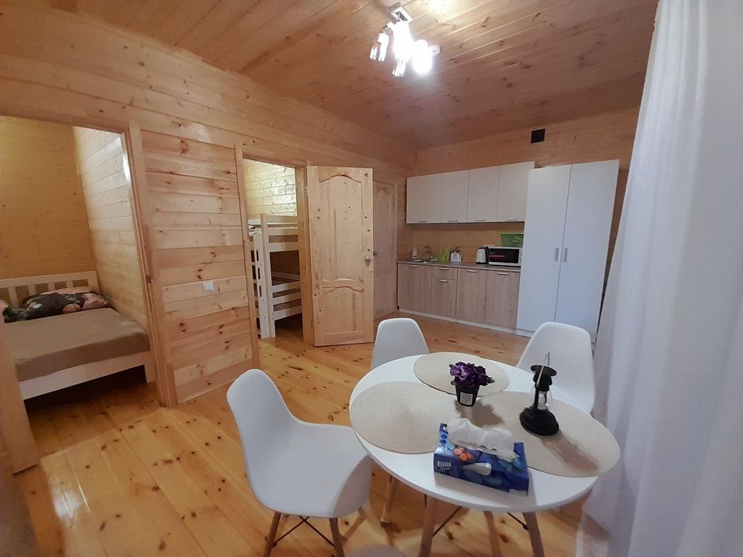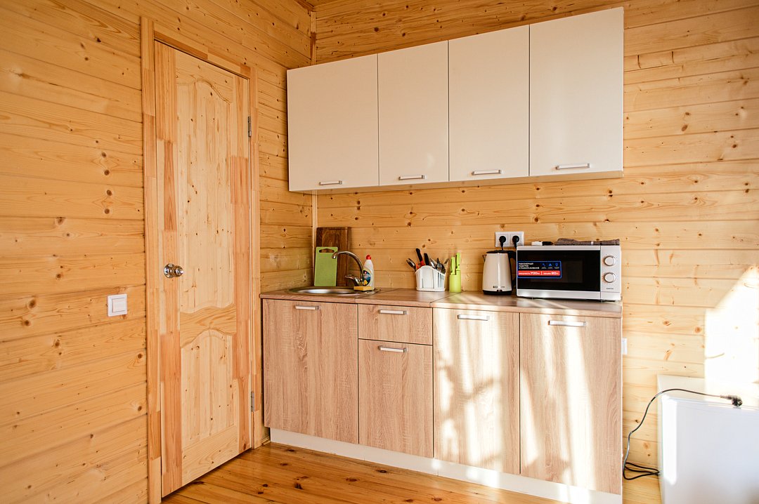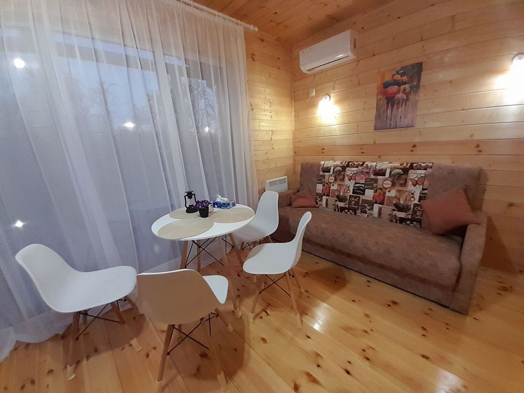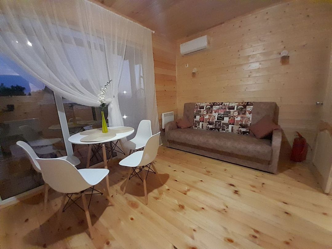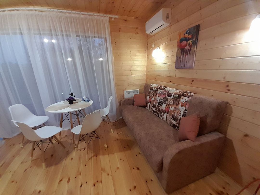 Уютный двухкомнатный дом с оборудованной кухней и ванной комнатой. Домик рассчитан на 4 человека.