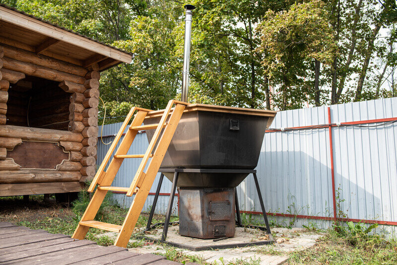 Это современная технология парения на открытом воздухе. По эффекту можно сравнить с горячими источниками. Температура воды в чане — от 38 до 42 °C. Прогрев происходит равномерно снизу вверх.