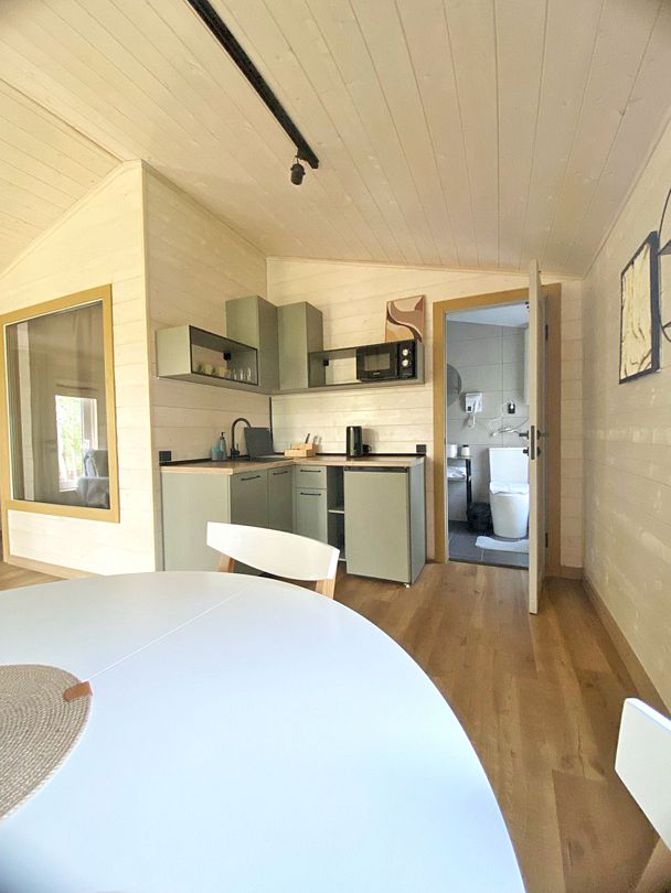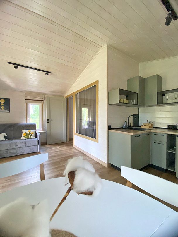 Каждый из гостевых домов оформлен в уютном стиле, с уважением к природным материалам и гармонией с окружающим ландшафтом.