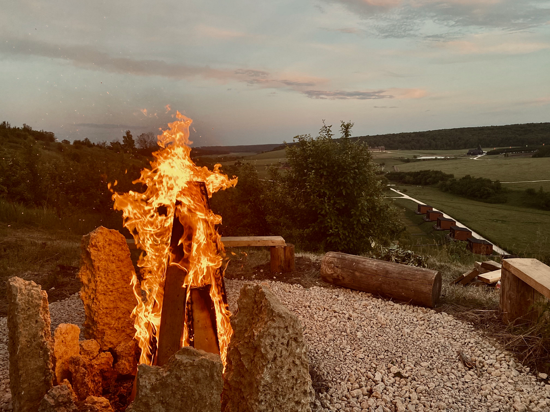 На базе отдыха для каждого домика предусмотрена индивидуально подготовленная костровая зона. Это идеальное место для уютных вечерних посиделок с близкими у костра, где можно насладиться атмосферой общения и уюта.
