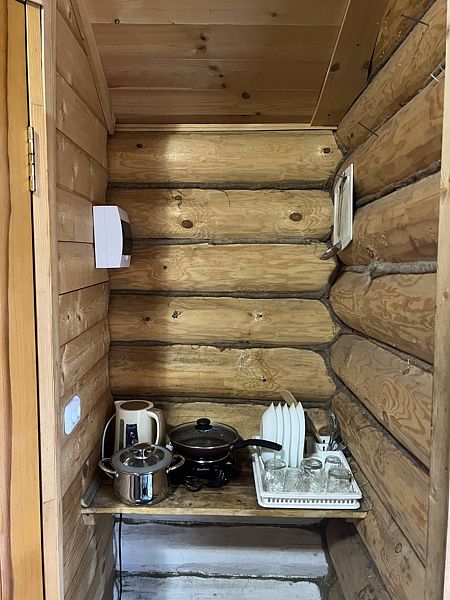 Зимний дом (сруб), вместимостью на 3-5 человек. На территории имеется один 3-местный сруб и три 5-местных.