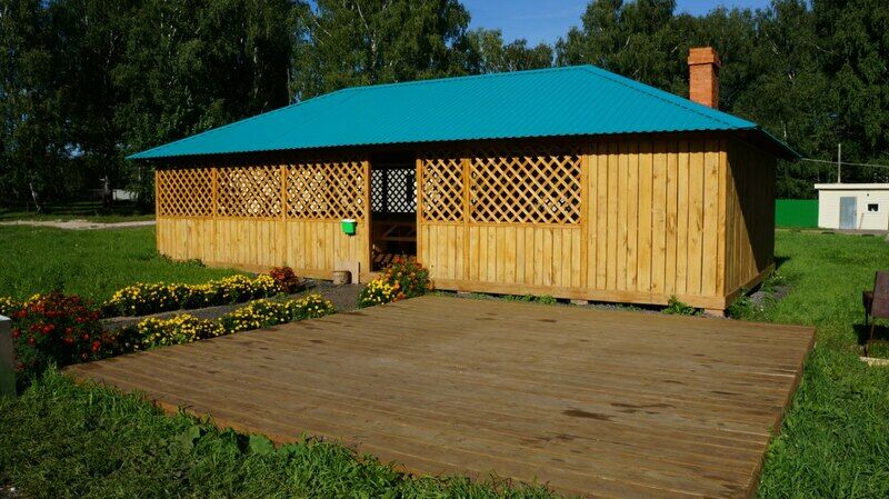 Вместимость 100 чел., спальных мест 30. Дом укомплектован кроватями по числу мест, ТВ, холодильником, электрочайником, санузлом с душевой кабиной, столами, табуретами и лавками.