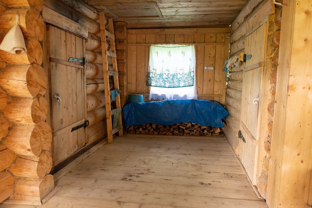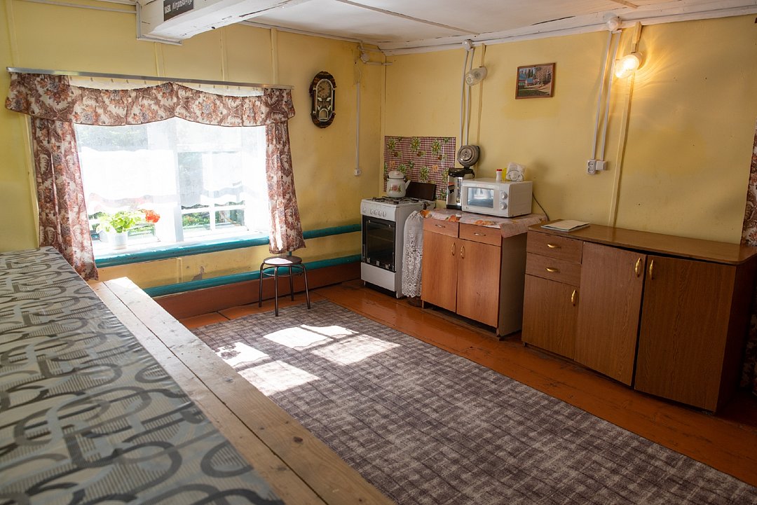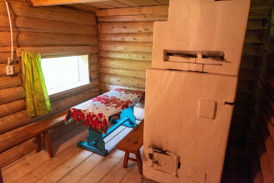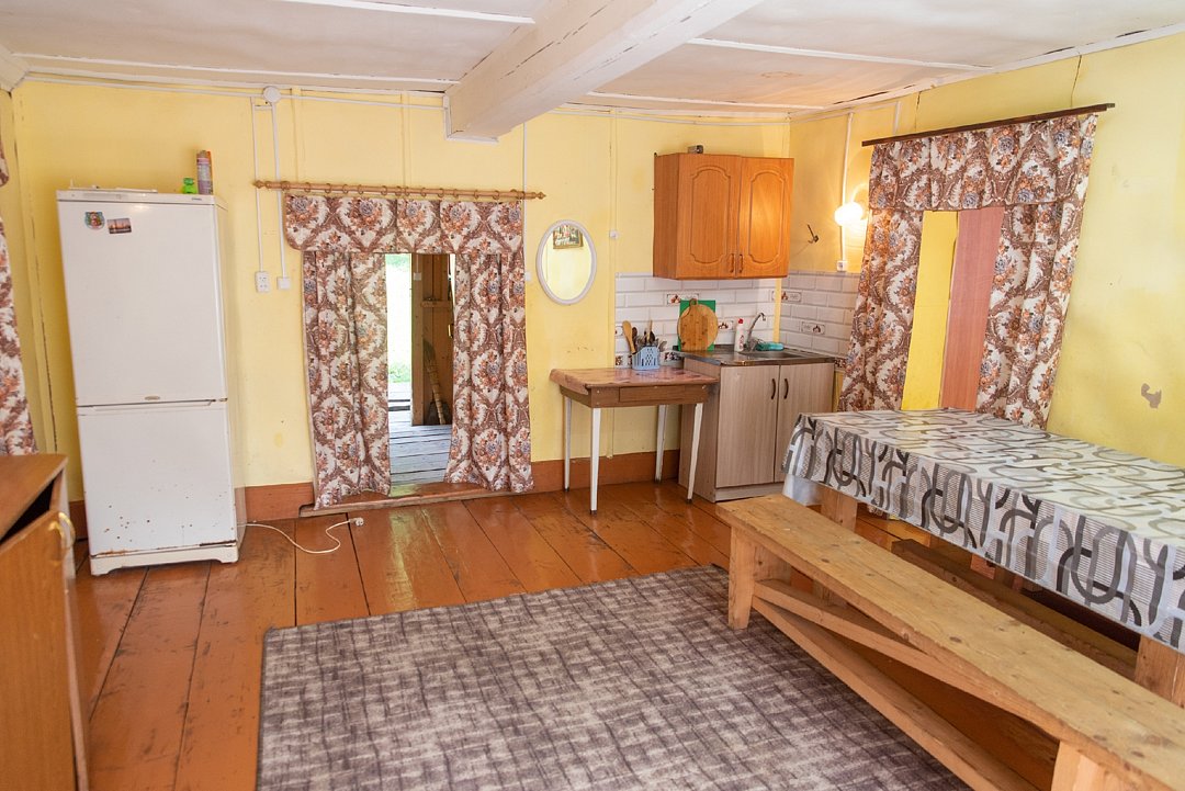 В доме: спальная, кухня, русская печь, встроенная беседка. Душа нет, туалет на территории.