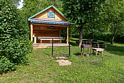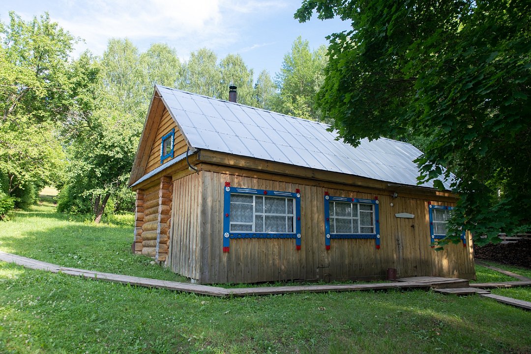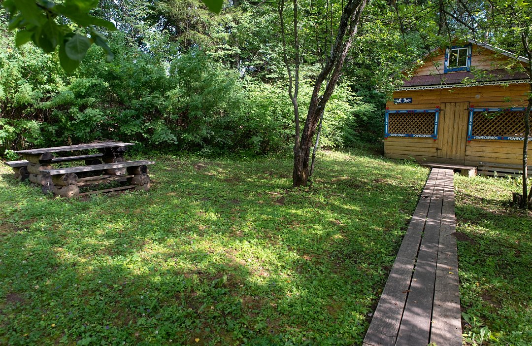 Четвертый комплекс включает в себя деревянный дом с десятью спальными местами, баней, мангалом и летней беседкой.
