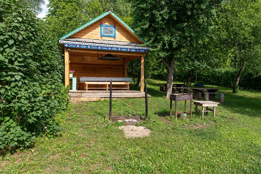 Второй комплекс приглашает окунуться в атмосферу подлинного отдыха с баней на роднике, шашлычной, летней беседкой с печью и мангалом, а также волейбольной площадкой.